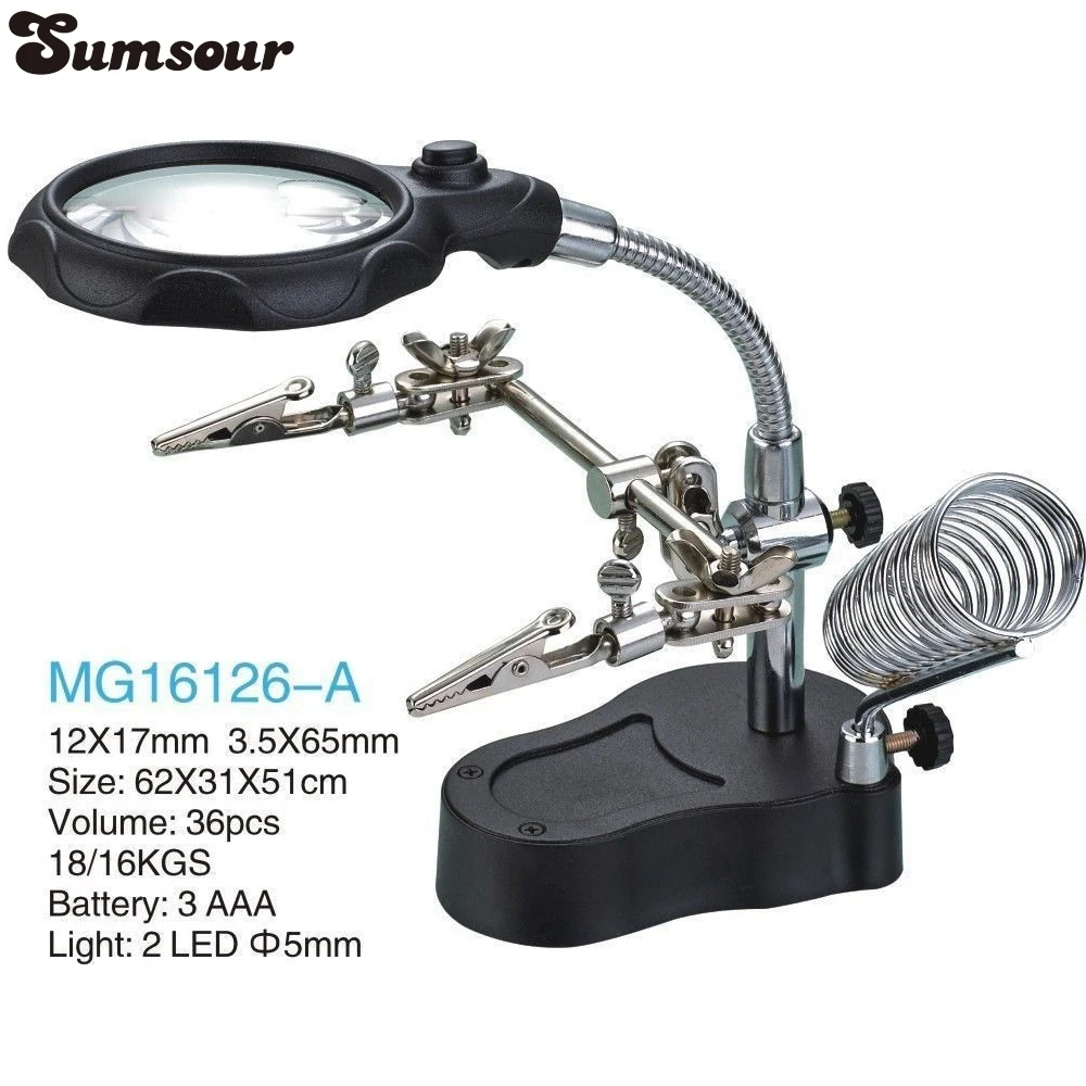 12-кратный 3-й зажим, светодиодный зажим, увеличительное стекло, паяльник стойка с лупой, инструменты для сварки, ремонта, держатель C0297