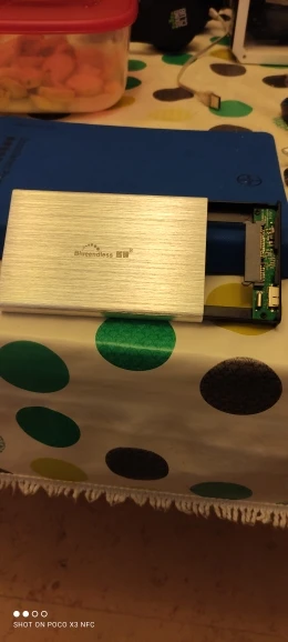 Доставили за 4 дня. Упаковка без повреждений. Вставил жёсткий диск 5400 об/мин, работает без нареканий, скорость не режет. Сам корпус довольно увесистый, стенки довольно прочные. В комплекте кабель, отвёртка и пара шурупов. Чтобы вставить свой жд, потребовалось сначала открутить плату.