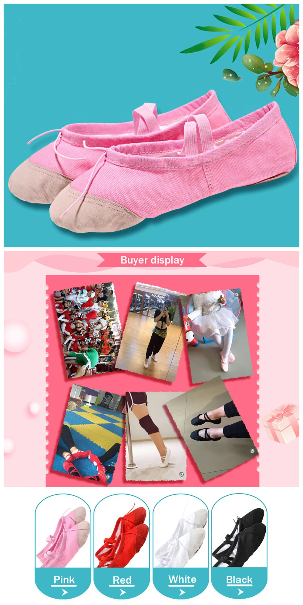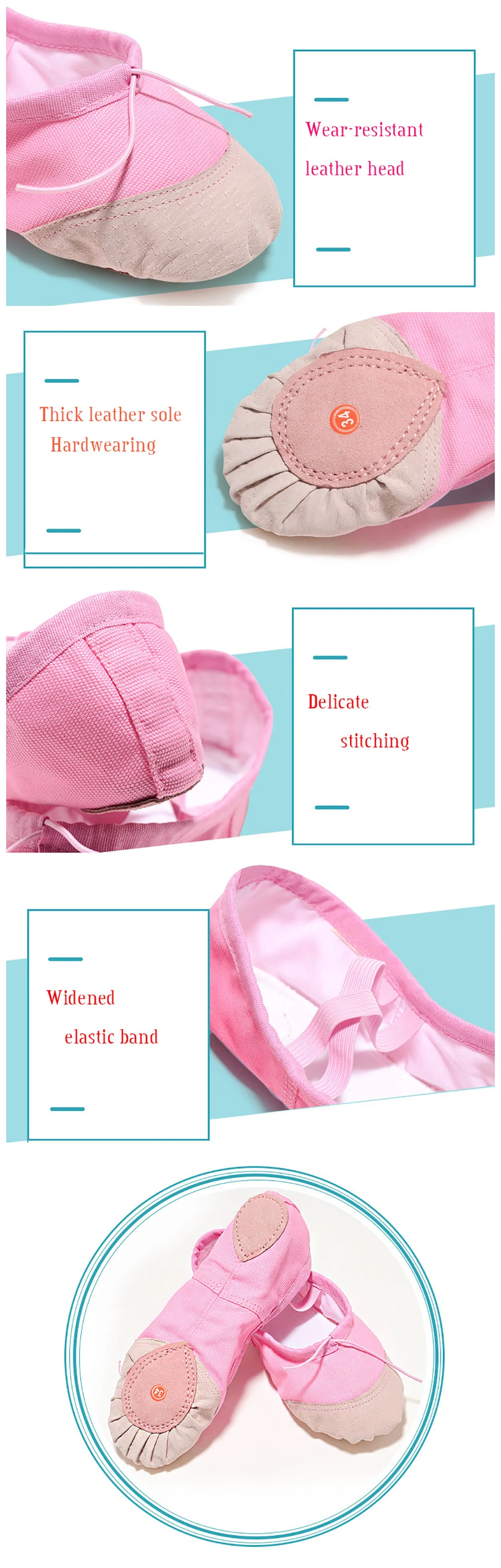 Профессиональные мягкие парусиновые балетные туфли USHINE розового,...