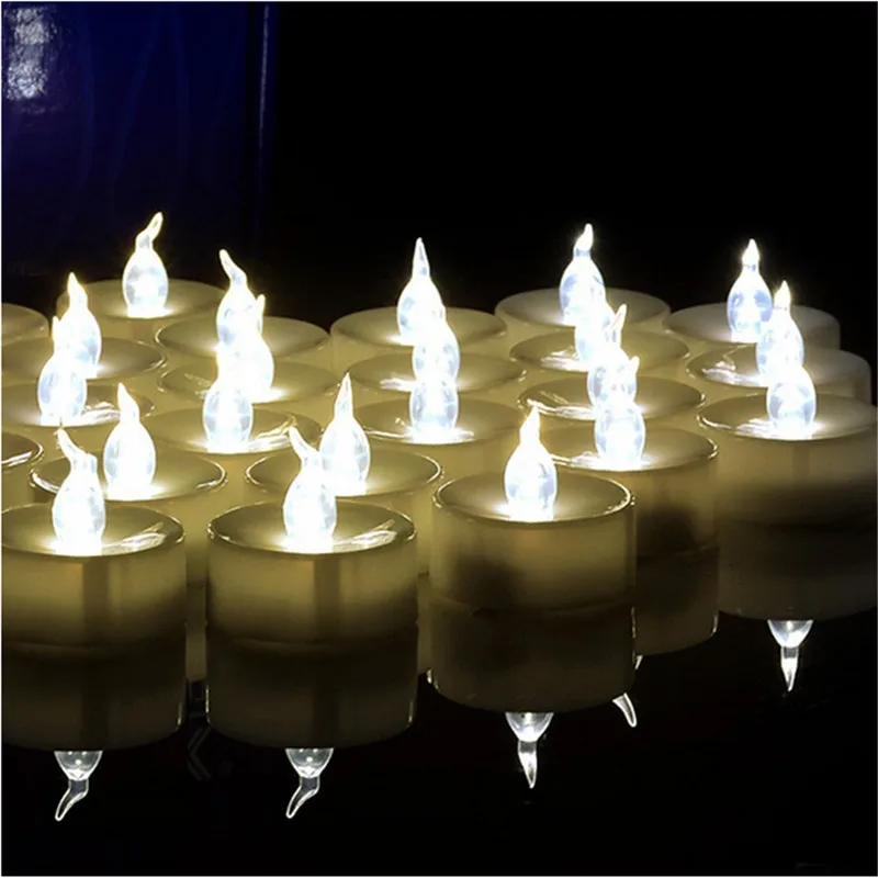 2015 теплые белые мерцающие светодиодные Чайные лампы с таймером, беспламенные Свечи с таймером (батарейка cr2032 входит в комплект)