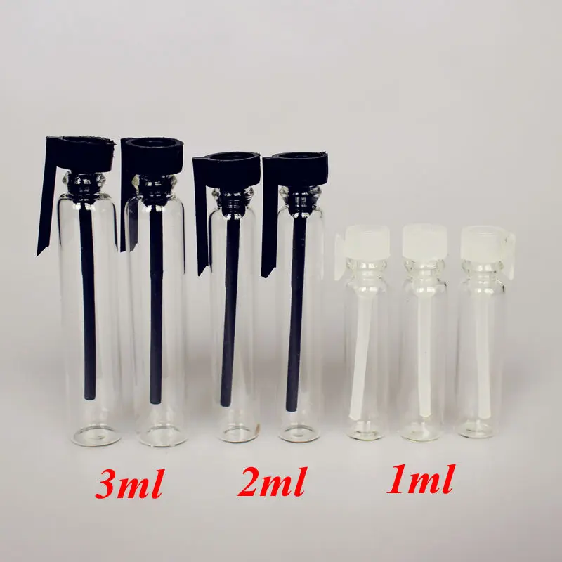 100 шт.лот 1 мл 2 мл 3 мл стеклянные флаконы для духов пробная бутылка для образцов стеклянные флаконы для духов стеклянная бутылка с пластиковой пробкой
