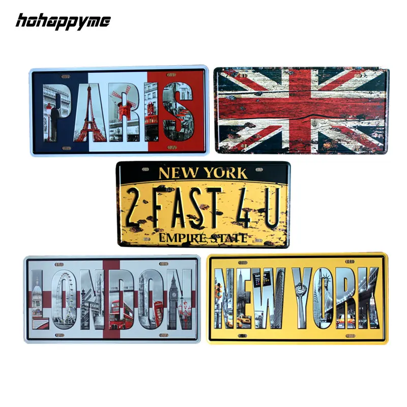 15*30 см европейский город Нью-Йорк Париж Лондон номерные знаки Ретро винтажные металлические знаки пиво плакаты металлические таблички