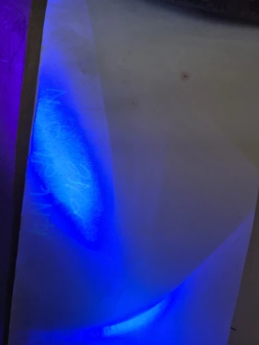 На бумаге и пластике видно и без подсветки под определенным углом.На теле и вещах отлично.