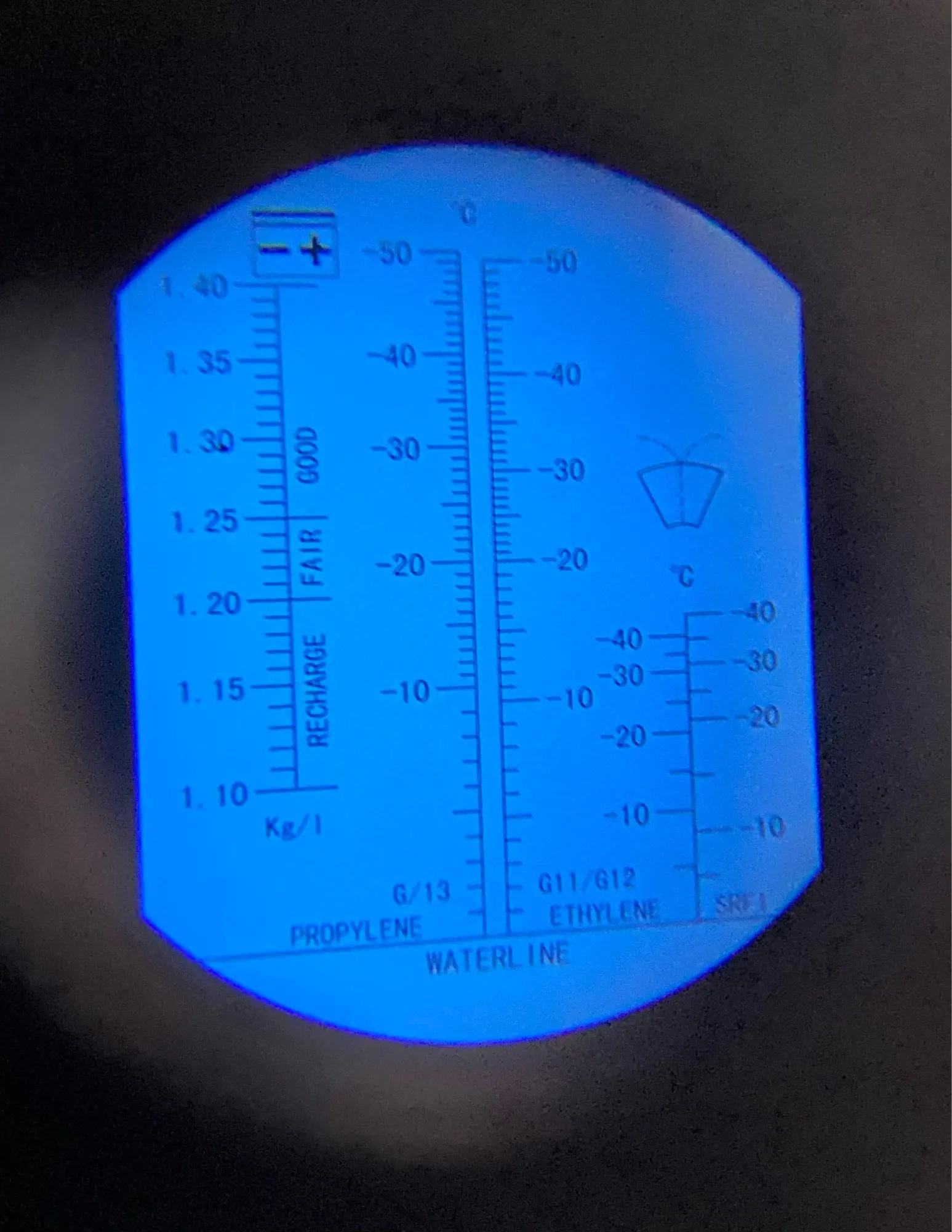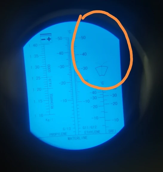 Отлично меряет, в частности "незамерзайку" мерял. Из обещанных -30 показало -4 степень замерзания этой жидкости :D Продавец был наказан. Купил в другом месте, -35 обещанных, показало -34.