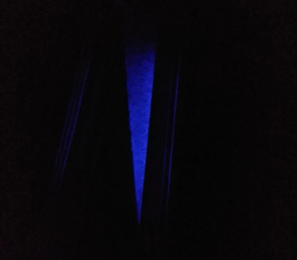 На 100 долларах светится розово-жёлтым полоска с цифрами. Ультрафиолет не яркий, но работает. Смотрел купюры ультрафиолетовой сушилкой для ногтей. Длина волны - не та. Здесь - ОК.
