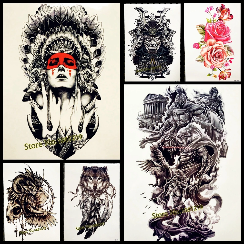 1 шт., горячая распродажа, индийский воин, водостойкая вспышка, тату, мужской боди-арт, рукав, нарукавник, тату, наклейки, 21*15 см, большой искусственный тату, автомобильный стиль