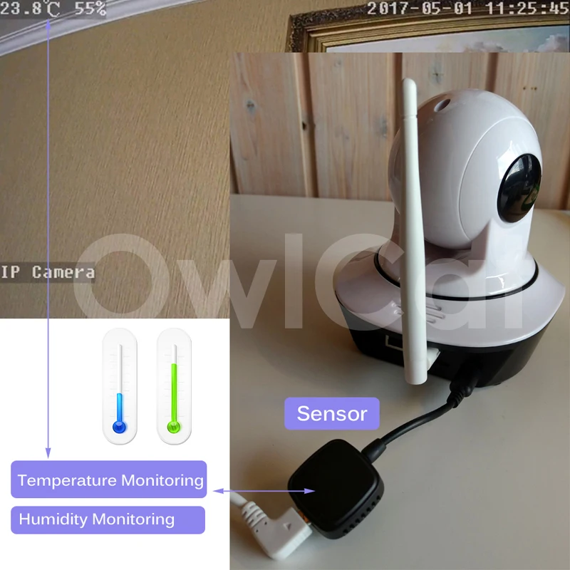 Вы можете нажать на фото камеры ниже, чтобы купить камеру с датчиком температуры влажности, если вам нужно: