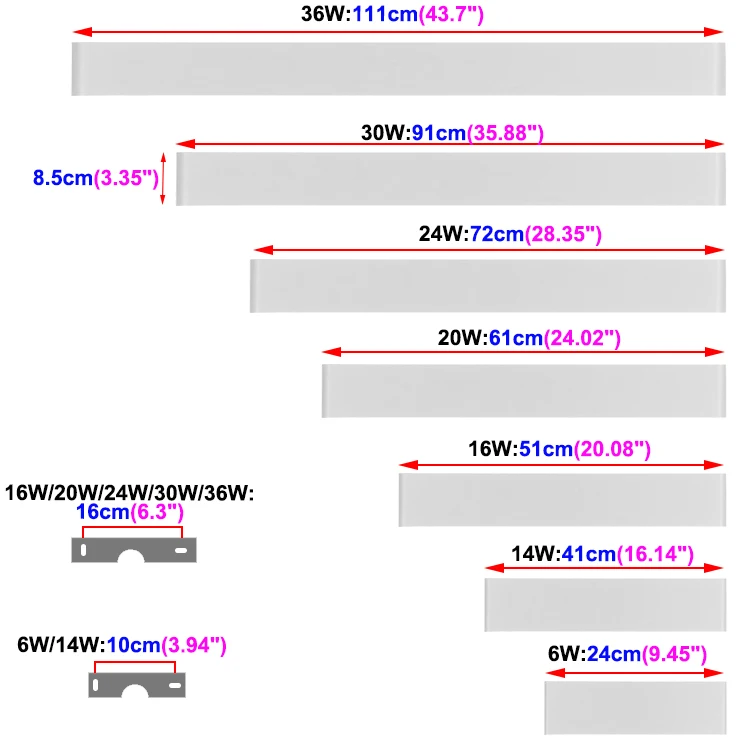 36 Вт:111 см (43,7 ") x8.5см (3,35");