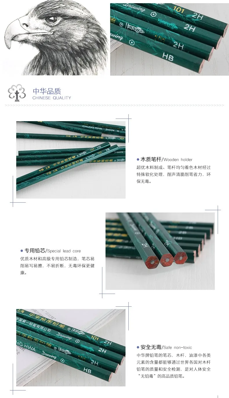 Набор карандашей для рисования Chung Hua, 12 шт.кор. 2H 2B HB, не токсичные Стандартные Карандаши для карандашей, карандаш офисный школьный