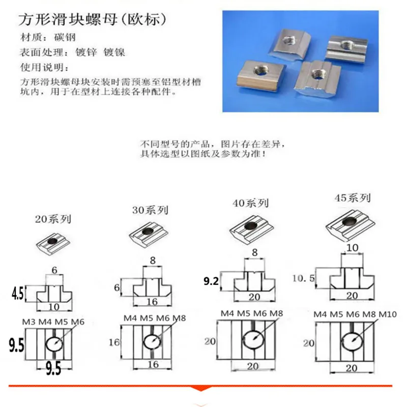 500 шт. 20-m3m4m5m6 T квадратные скользящие блочные гайки для 2020 алюминиевого профиля слот с цинковым покрытием алюминиевые соединительные аксессуары