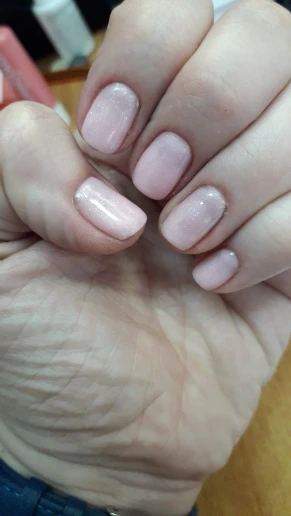 Очень красивый лак, брала по отзывам,нежно розовый с мелким шимером