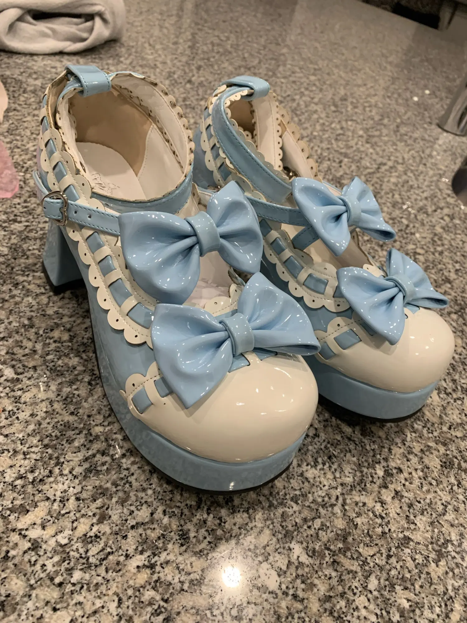 Женские весенние босоножки в стиле аниме лолита; Женская обувь на каблуке; Винтажные кожаные туфли принцессы на платформе и высоком каблуке с бантом