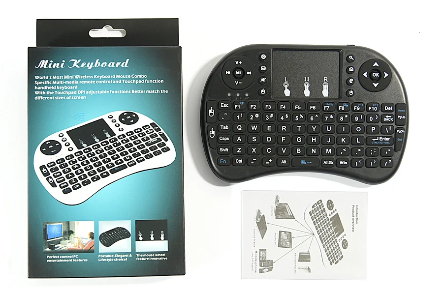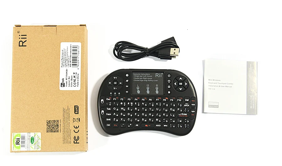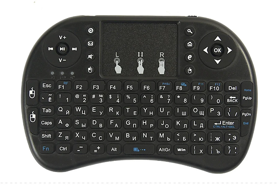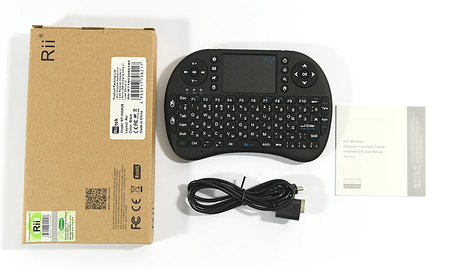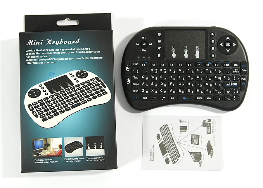 Товар, как описано, буду покупать снова. Клавиатура аналогична размеру контроллера игровой консоли. В «черной английской версии», которую я получил, используются две батарейки AAA. Около 6 недель, чтобы получить посылку в центральной США -- коробка была слегка раздавлена, но товар был в порядке. Клавиатура будет идеальной, если у нее будет физическое колесо прокрутки в верхнем углу.