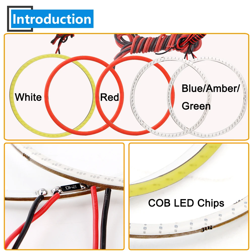 2 шт.компл. 70 мм 12 В COB 60 SMD Светодиодные Автомобильные кольца Angel Eyes Halo DRL водонепроницасветодиодный противотумансветильник Красный Белый Зеленый янтарный Зеленый