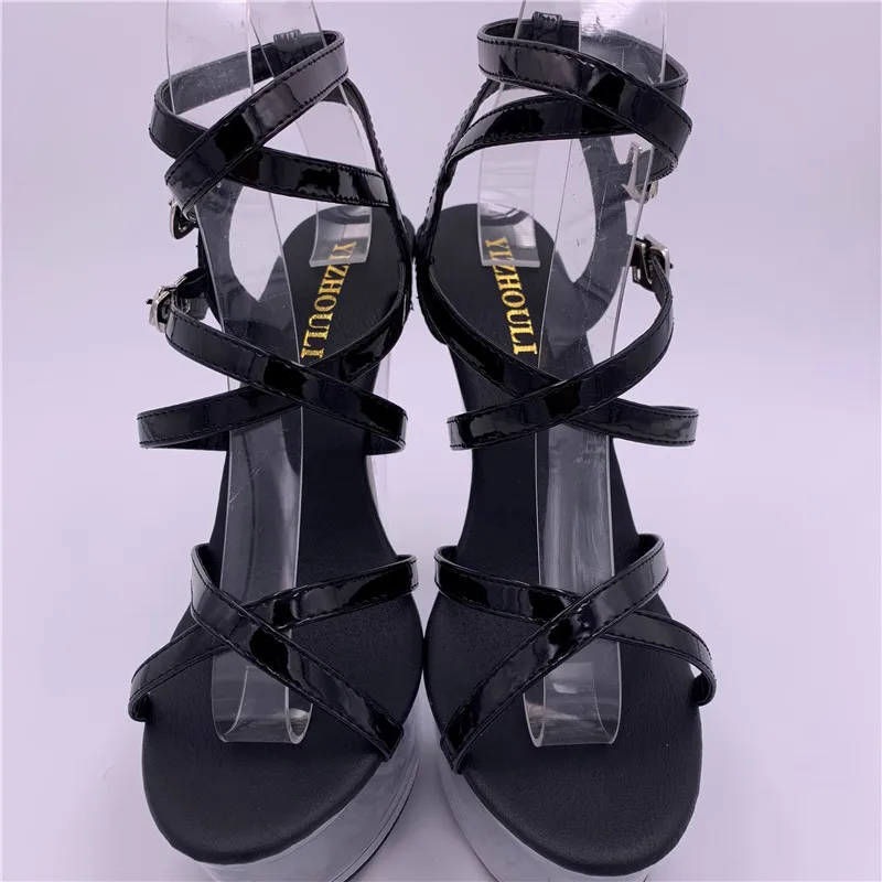 Сандалии женские прозрачные на очень высоком каблуке 15 см, босоножки на платформе с кристаллами, обувь для выступлений, цвет черный, 6 дюймов