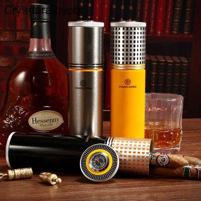 Классические гаджеты из алюминиевого сплава для путешествий, портативная банка для сигар, уличная сигарета Humidor W, увлажнитель, гигрометр, Флокированная сумка