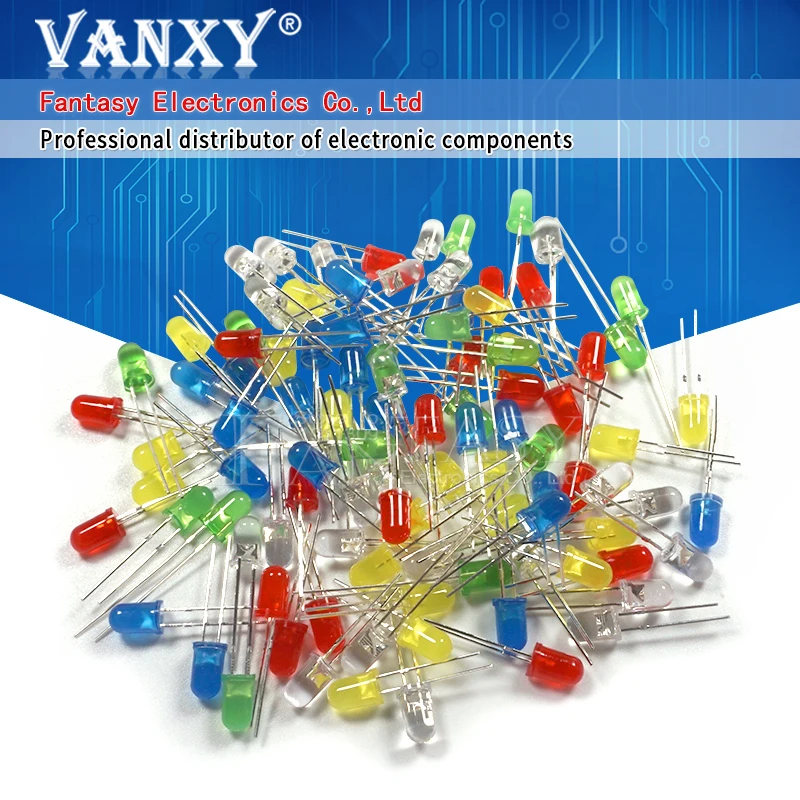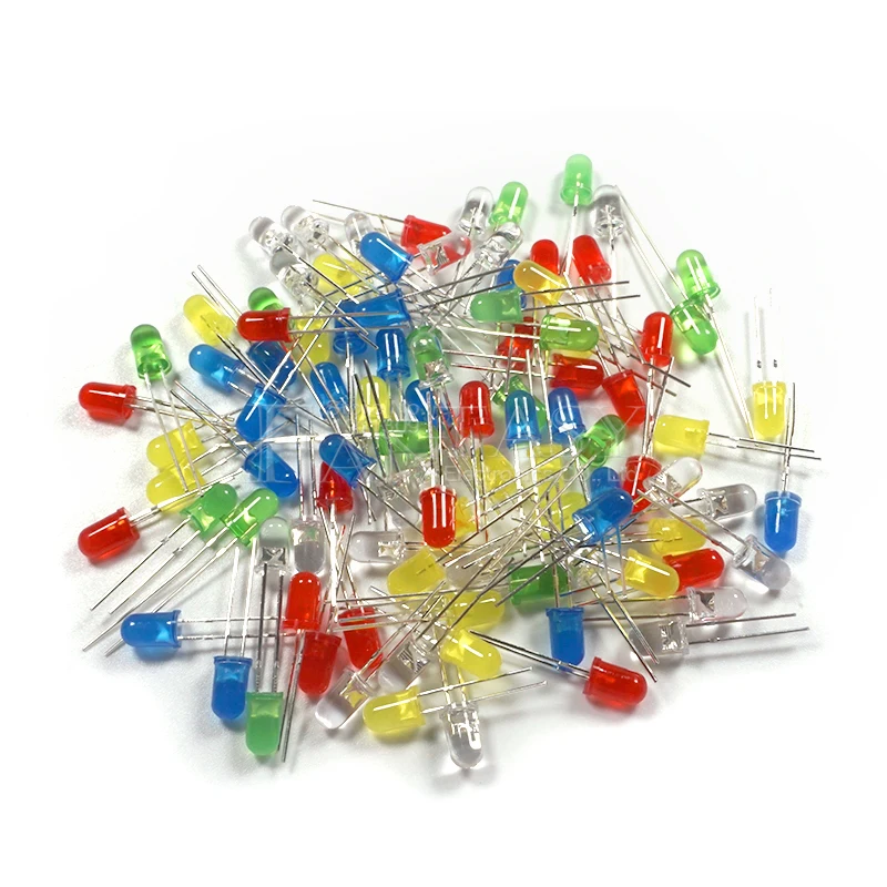 Светодиодный диодный светильник 5 цветов * 20 шт. = 100 шт. 5 мм, набор в ассортименте, зеленый, синий, белый, желтый, красный набор компонентов сделай сам, новый оригинальный