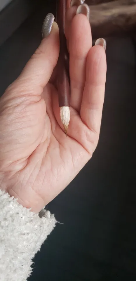 Тонкая маленькая кисть (на фотографиях в магазине кажется немного больше, но см в описании точно. Фотографии покупателей показывают лучший размер жизни). Высокое качество кисти, работает безупречно.