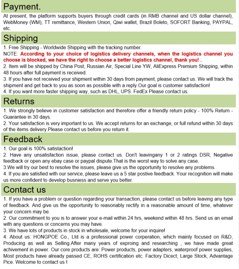 Страна: NO Input Voltage: 100-120V/200-240V Output Voltage: 12V Ships From: China Доставка: China Post Registered Air Mail 17.02.2021