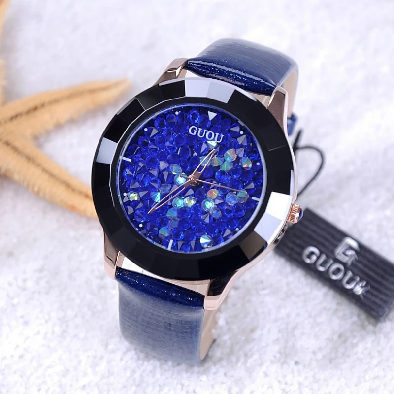 Часы наручные GUOU женские, роскошные стразы с блестками, стразами