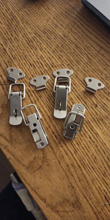 Отличные защёлки, подпружининые. Окуратные, хорошего качества. Пришли быстро. Сервис на уровне. Защелкивают отлично. Держат хорошо. Продовец ответственный человек. Очень хорошая упаковка. Я доволен, буду заказывать ещё. Советую, не ошибетесь. Всем хорошего время суток.