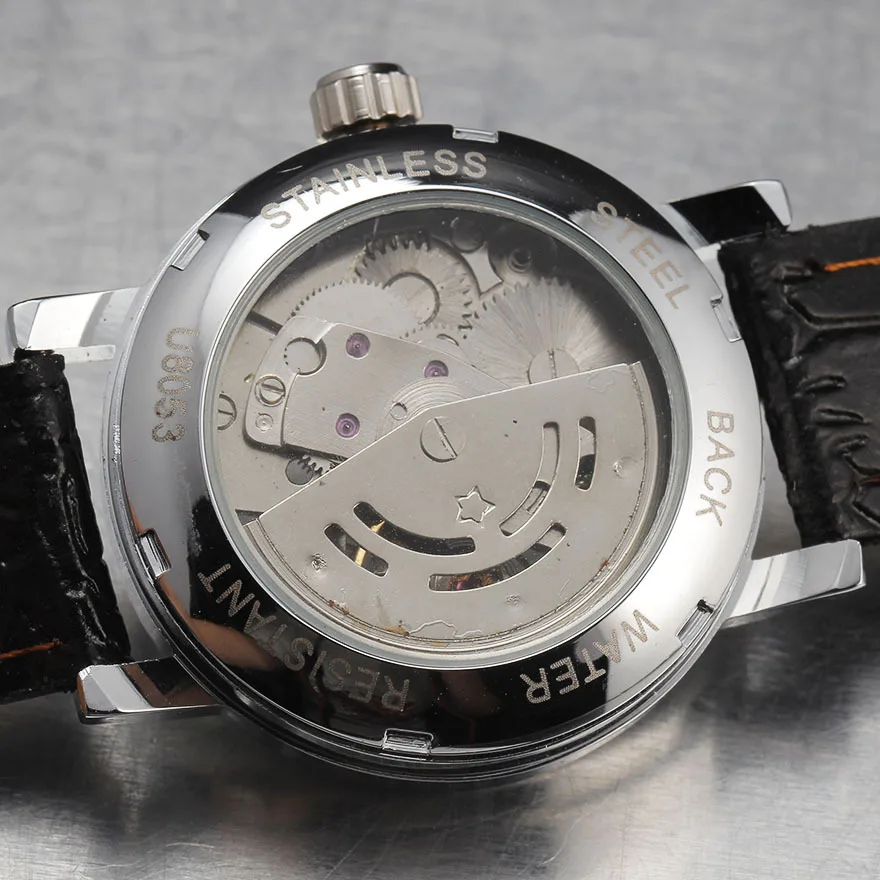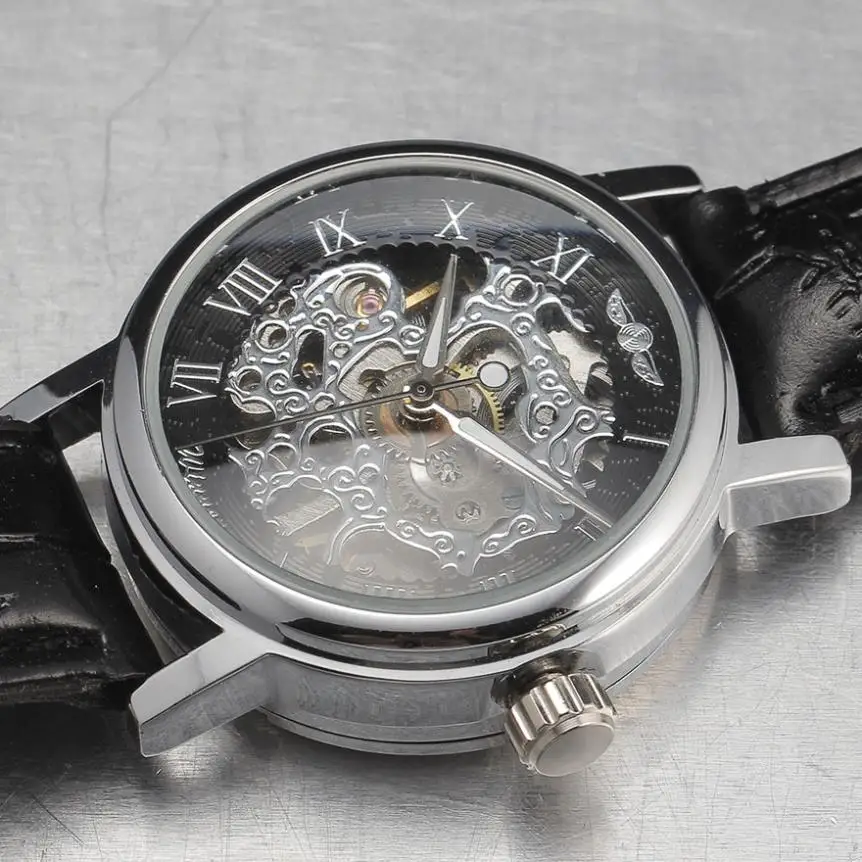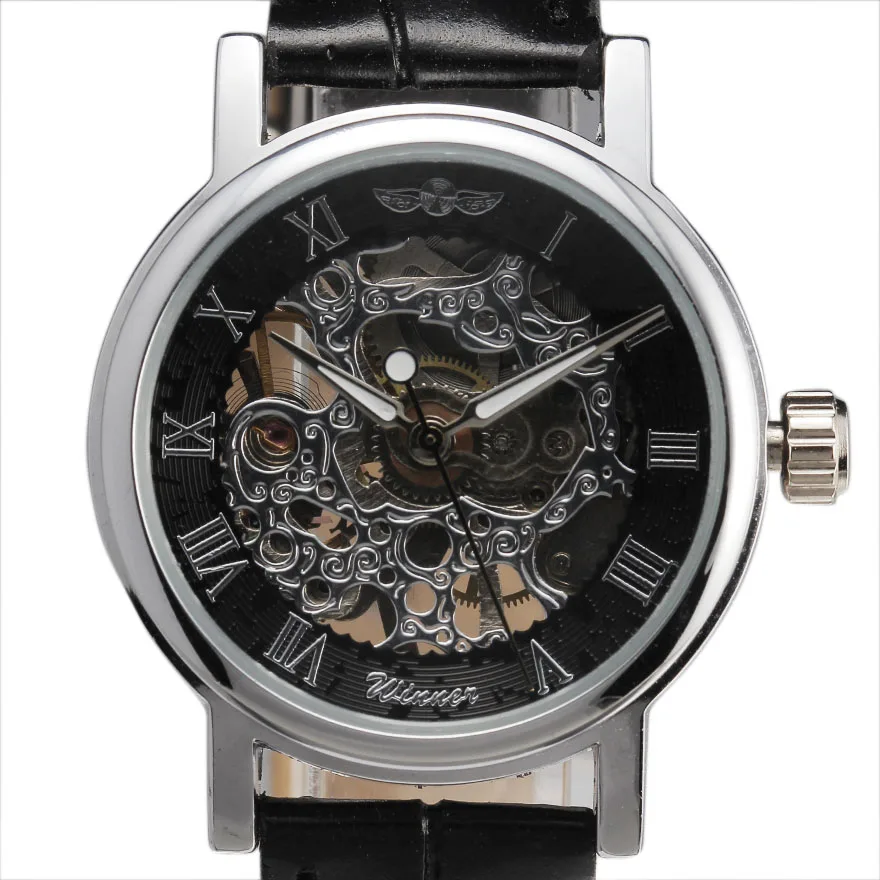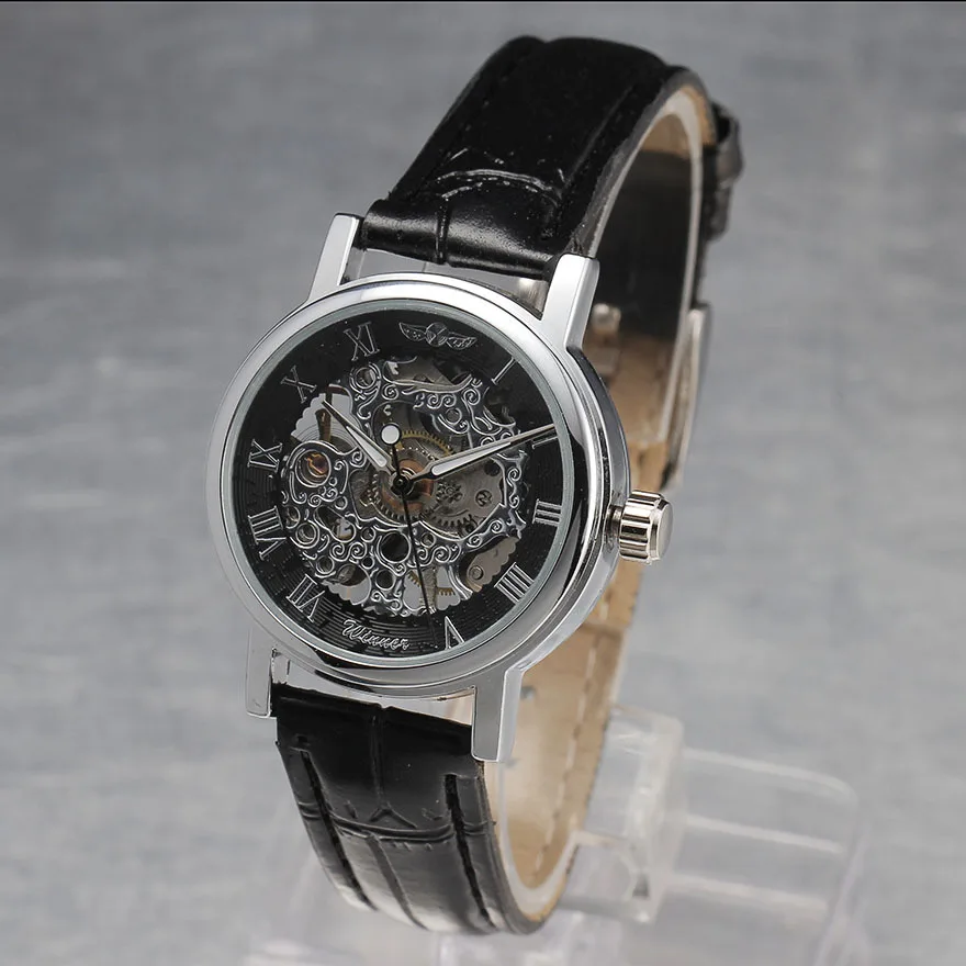 Топ 2016 Winner стильные женские часы, женские скелетоны с полым кожаным ремешком, деликатные механические Автоматические наручные часы с автоподзаводом