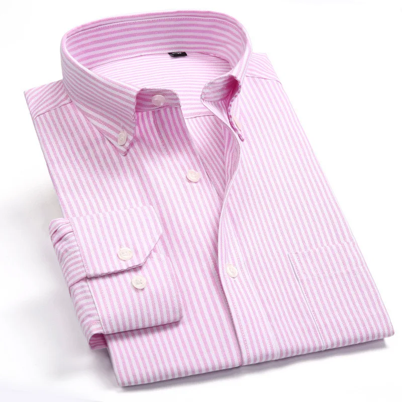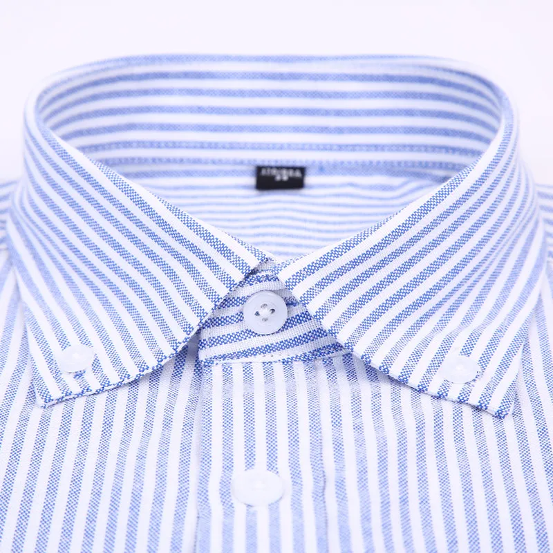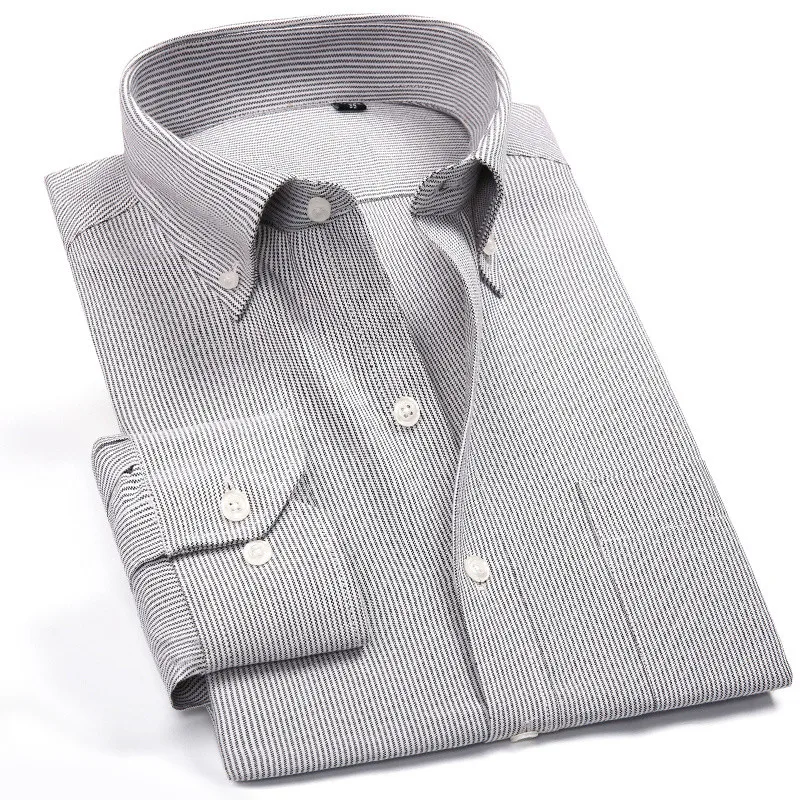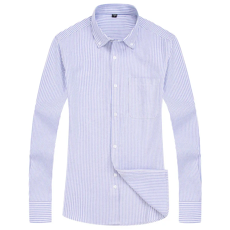 Мужская Повседневная рубашка в полоску из ткани Оксфорд с длинными рукавами, синяя Удобная дышащая рубашка с воротником и пуговицами на весну и осень, новинка 2022
