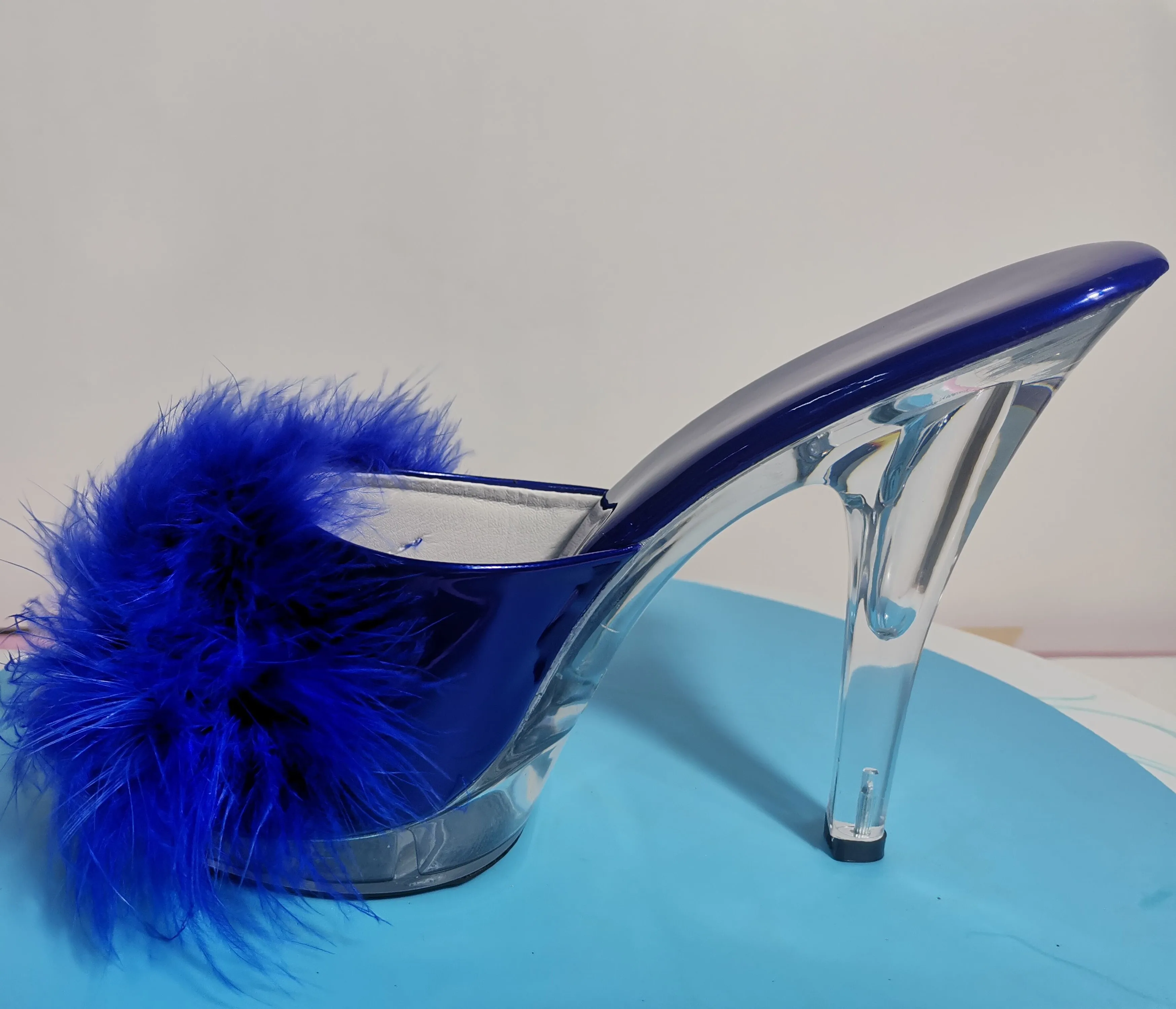Туфли на высоком каблуке 13 см; Обувь с перьями и стразами; Пикантные женские сандалии на платформе