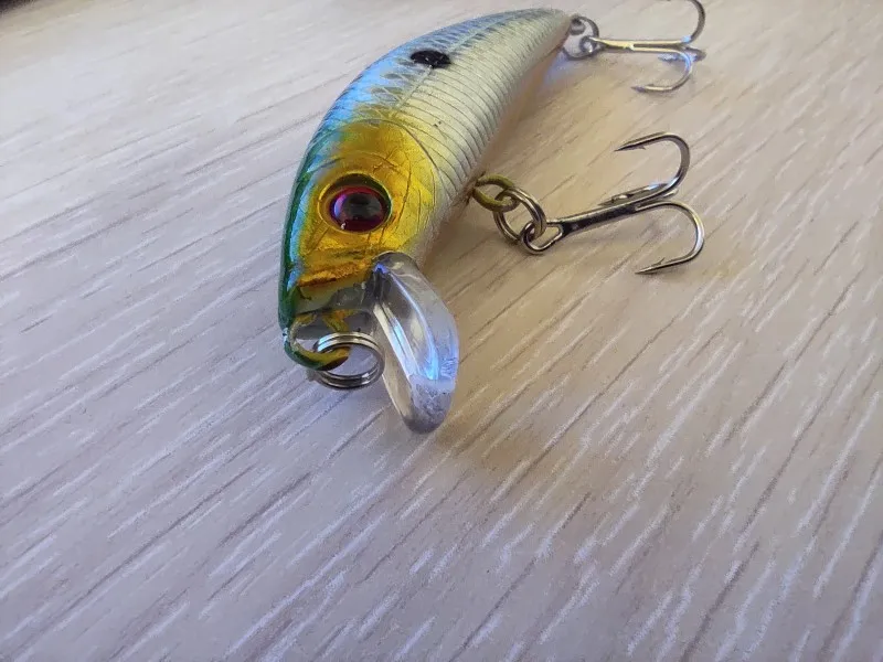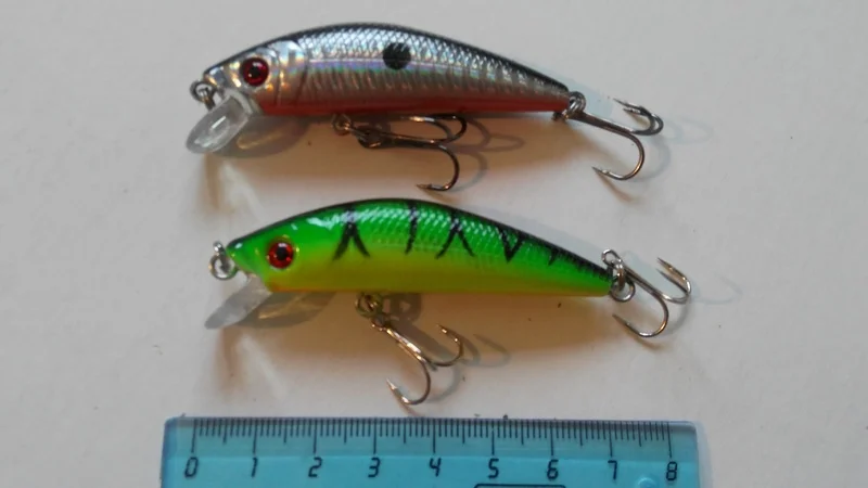 Воблеры медленно тонут жопой вниз. Петли проклеивать обязательно. Покраска не плохая. Тройники слабые, лучше заменить. За такую цену нормально. Раньше брал у другого продавца, чуть более светлого цвета. Ловят щуку, окуня