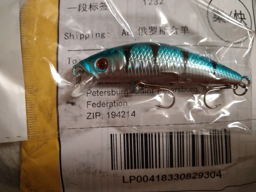 Заказал 17.01.2021, пришло 01.02.2021 (Санкт-Петербург). Цена 52,03 руб. Заказываю (уже второй раз) не для себя, для опытного рыболова. С его слов: "Качество воблера хорошее. Для неглубоких водоемов идеально. "Играет" хорошо. Минус - сами крючки, но их можно менять". В России цена в два-три раза выше на тот же самый товар. Продавца рекомендую.