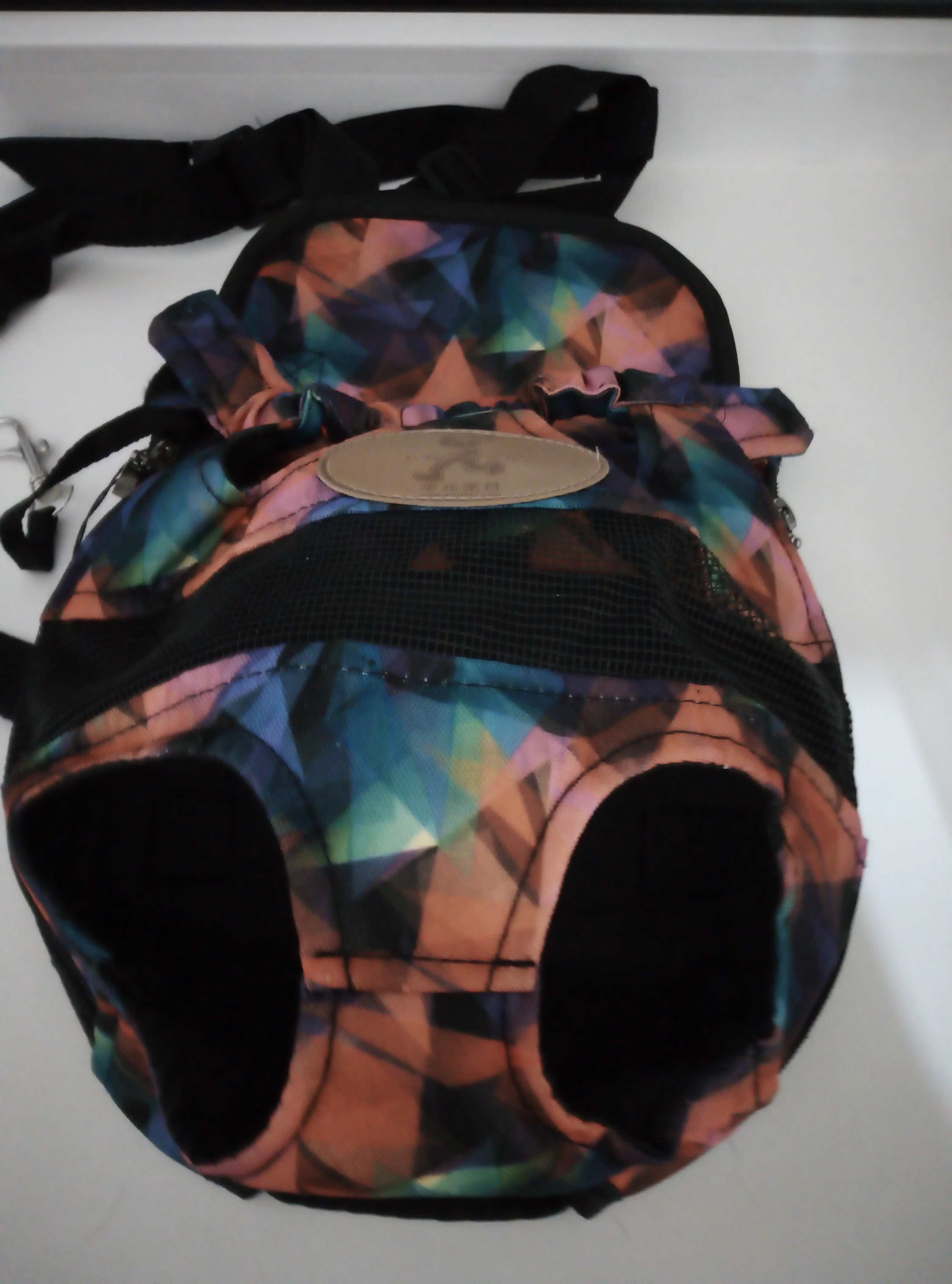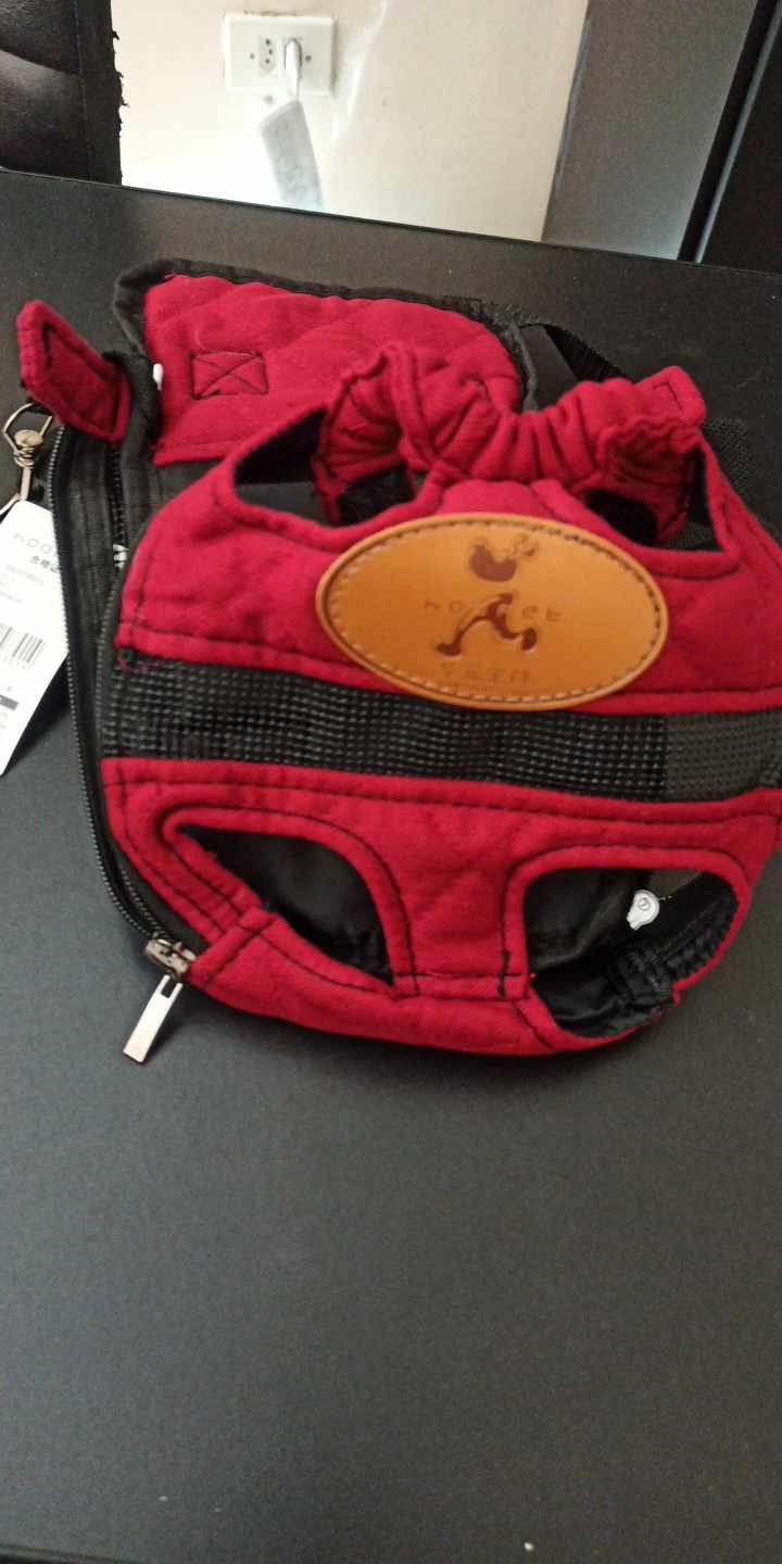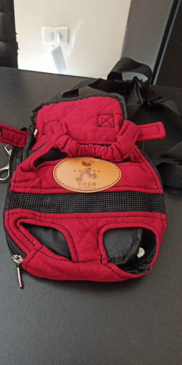 Быстрая доставка. Размер M для собаки весом 2,2 кг. Материал мягкий и хорошо сшит. Молнии хорошие. Он имеет пластиковую решетку вентиляционного отверстия и страховку для привязки к ошейнику для собаки. Он кажется удобным и имеет отверстие, чтобы вытянуть хвост. Теперь нам просто нужно гулять.