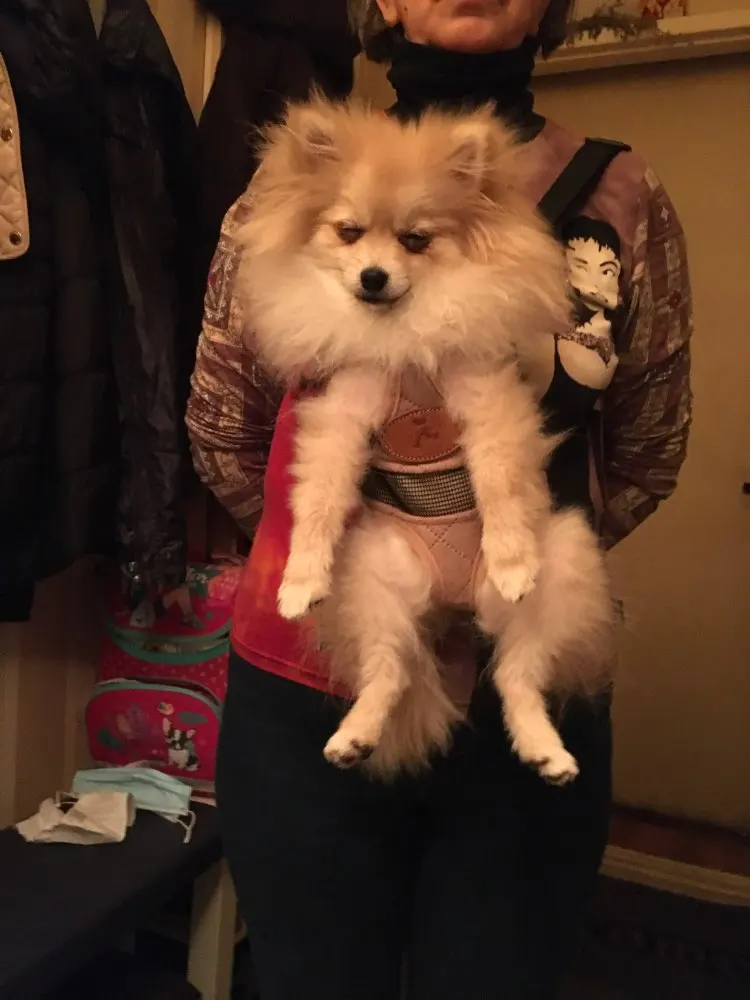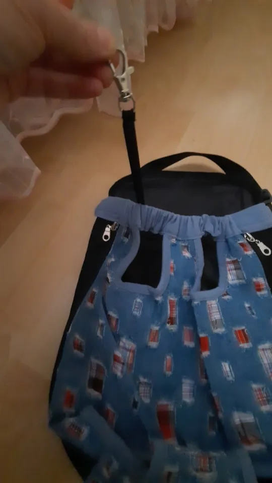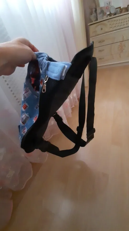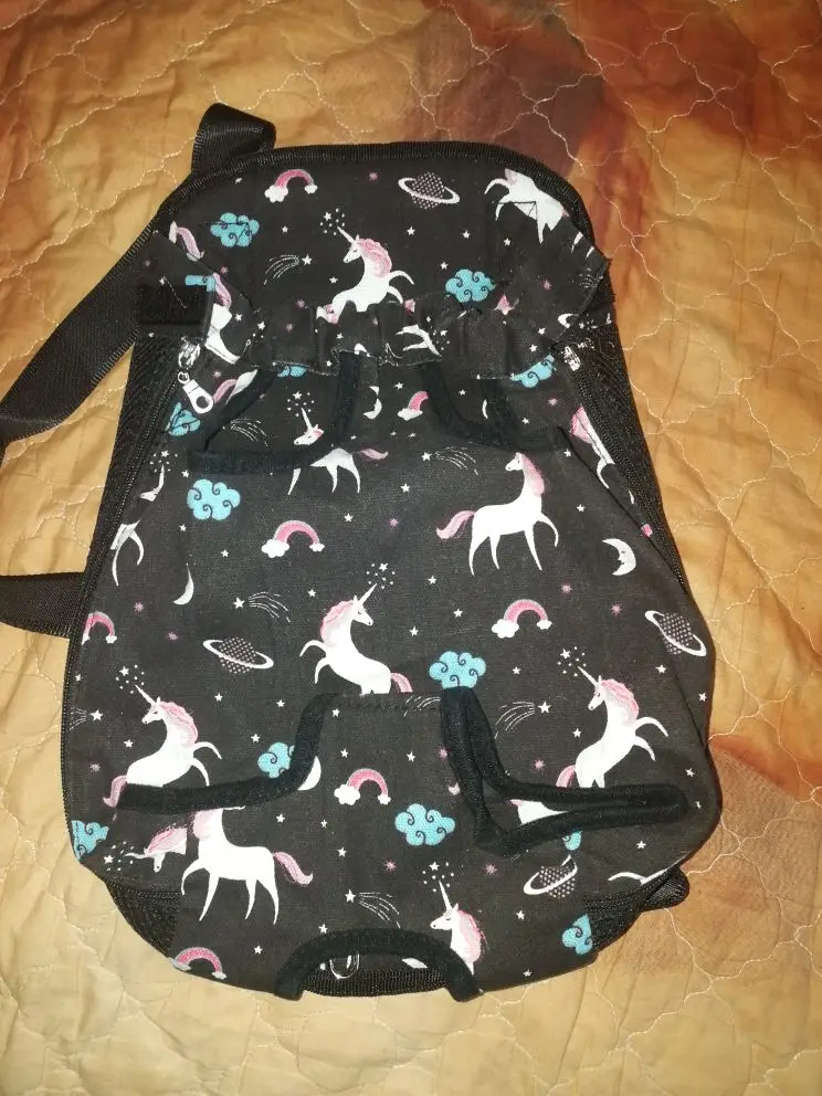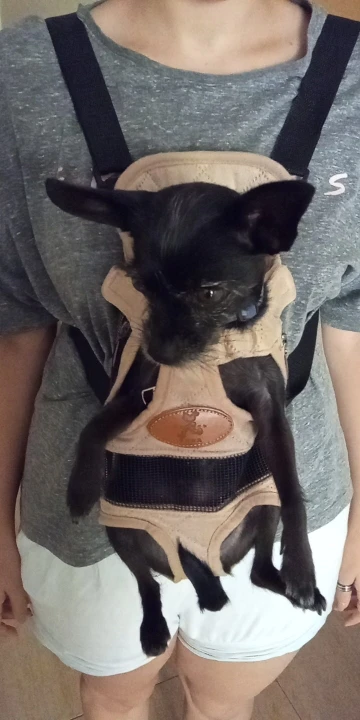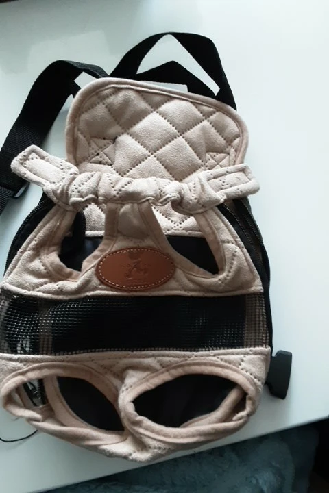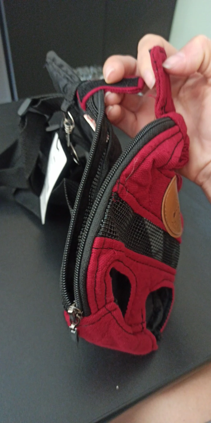 Быстрая доставка. Размер M для собаки весом 2,2 кг. Материал мягкий и хорошо сшит. Молнии хорошие. Он имеет пластиковую решетку вентиляционного отверстия и страховку для привязки к ошейнику для собаки. Он кажется удобным и имеет отверстие, чтобы вытянуть хвост. Теперь нам просто нужно гулять.