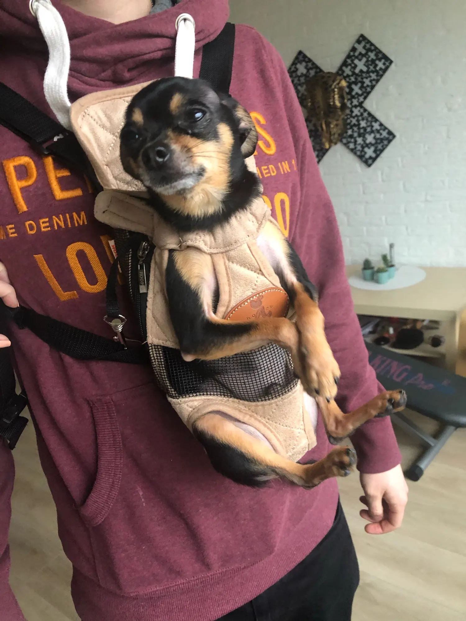 Потрясающая переноска! Собака после первого раза теперь просится в нее! Ничего не жмет, не мешает. Чихуахуа катается в ней спокойно и даже спит!