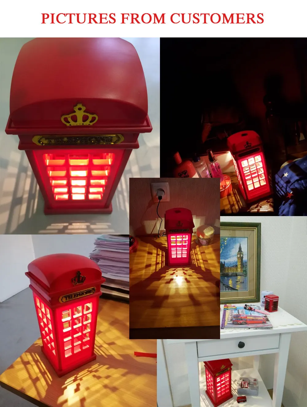 Настольная Светодиодная лампа ASCELINA в стиле ретро, с зарядкой от USB, сенсорный ночсветильник в стиле лондонской телефонной будки