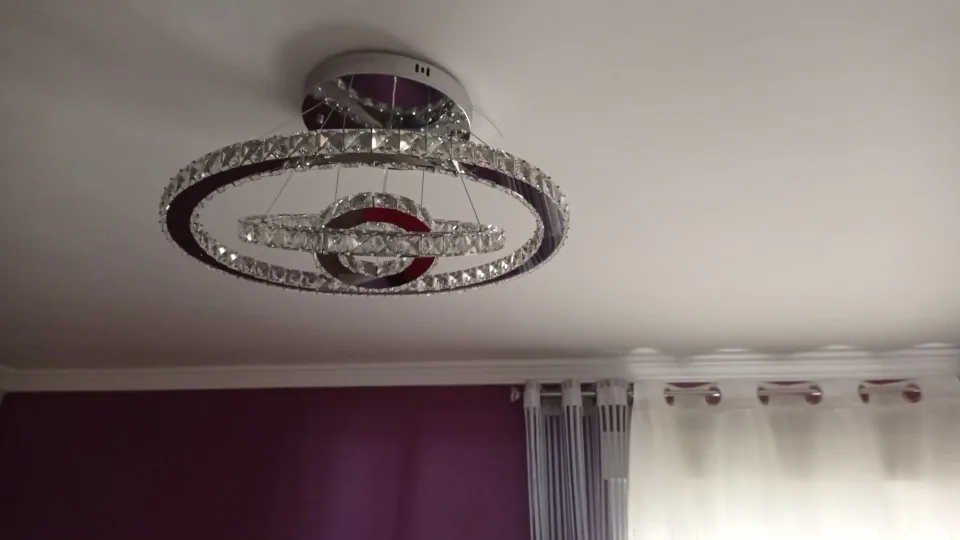 Спасибо за великолепный товар! Очень красивая люстра, муж и дети в полном восторге. Ехала 2 месяца, доставка Мистэкспресс адресная. Коробка добротная, люстра в пенопластовом коконе. Посылка без единой примятости. С установкой поморочились. Советую сразу отмерять рулеткой одинаковую длину тросиков. когда все вымеряешь, подтягивать. Назад идут только если разобрать и вынять малюсенькие шарики. В общем, решение о высоте каждого кольца принимайте сразу. Еще очень залапывается основание, вешали его без перчаток. И в пульте нет батарейки, это короткая специальная батарейка, еще не купили такую. Рекомендую товар и продавца, очень рада этой покупке!