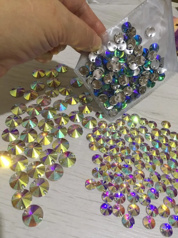 Круглые разноцветные стразы Rivoli из смолы, шитые стразы, шитые стразы, круглые шитые стразы, одежда, Y3625