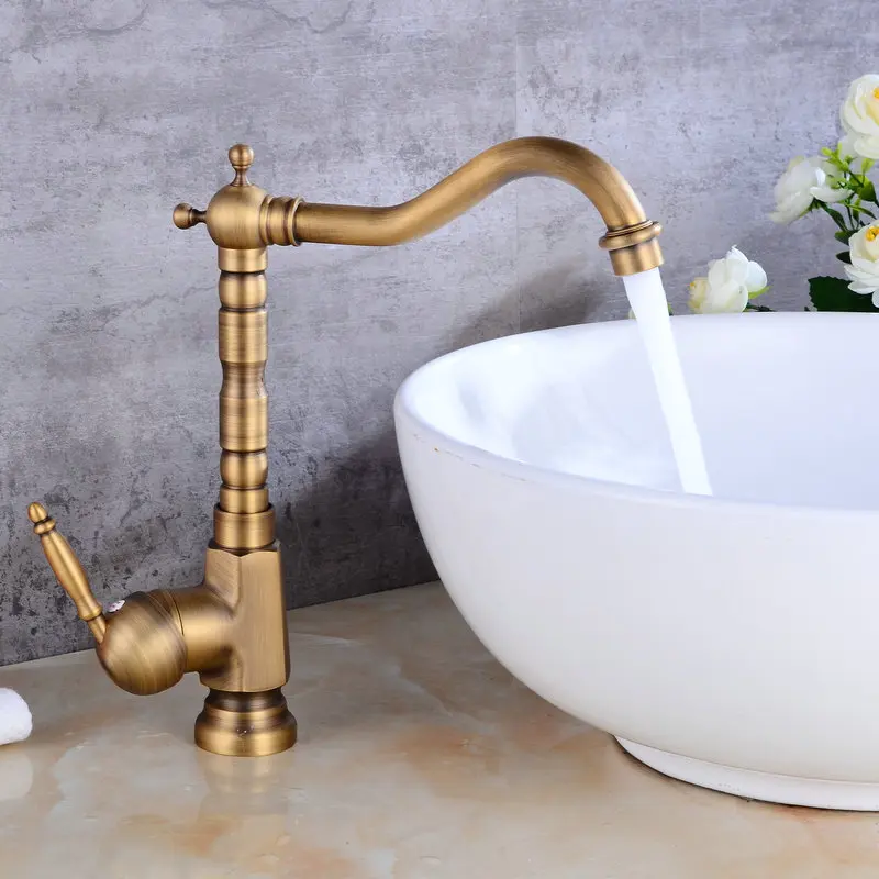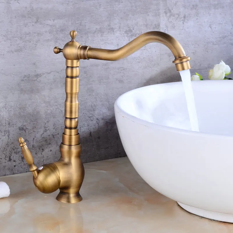 Античный матовый смеситель для раковины ванной комнаты Смеситель кран из латуни и фарфора 360 Поворотный 9066AP