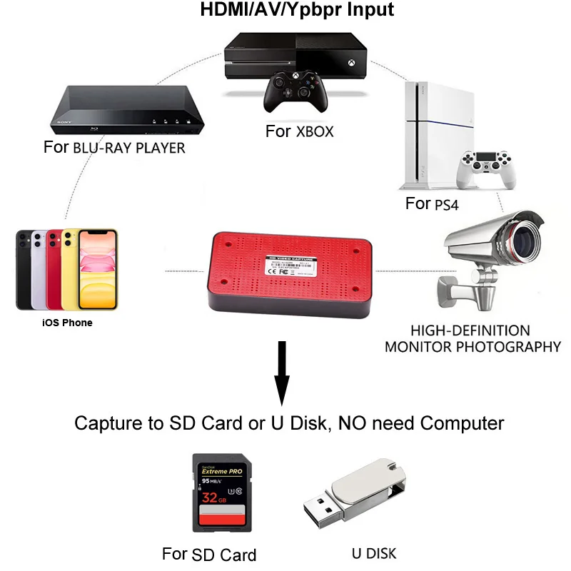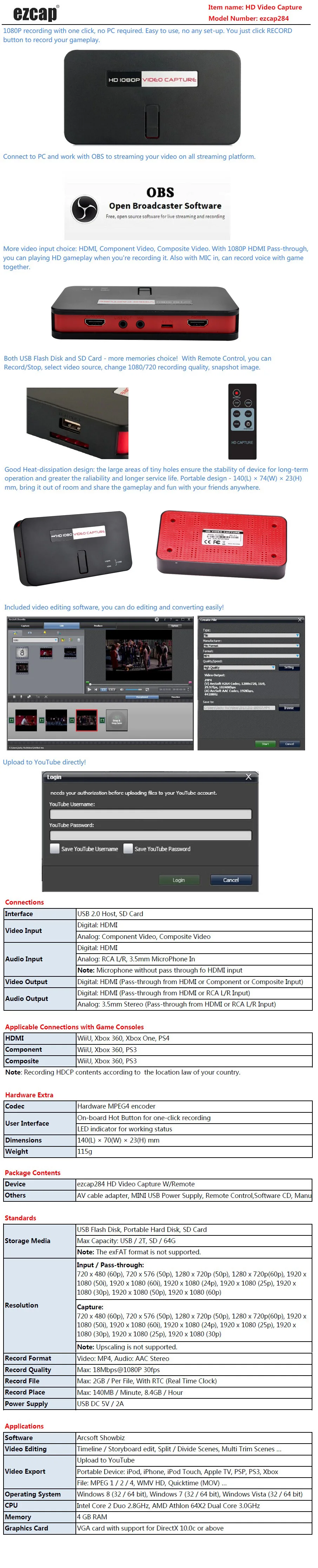 Оригинальный Захват карты видеозахвата EZCAP 284 AV HDMI для XBOX Switch PS4 TV Box Medical Video Live Stream, HDMI Loop Mic