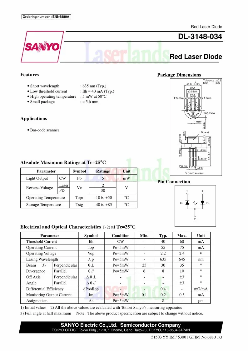 5 шт. 5 мВт 635нм оранжевый/красный TO18 5,6 мм n-тип лазерный диод LD SANYO DL-3148-034
