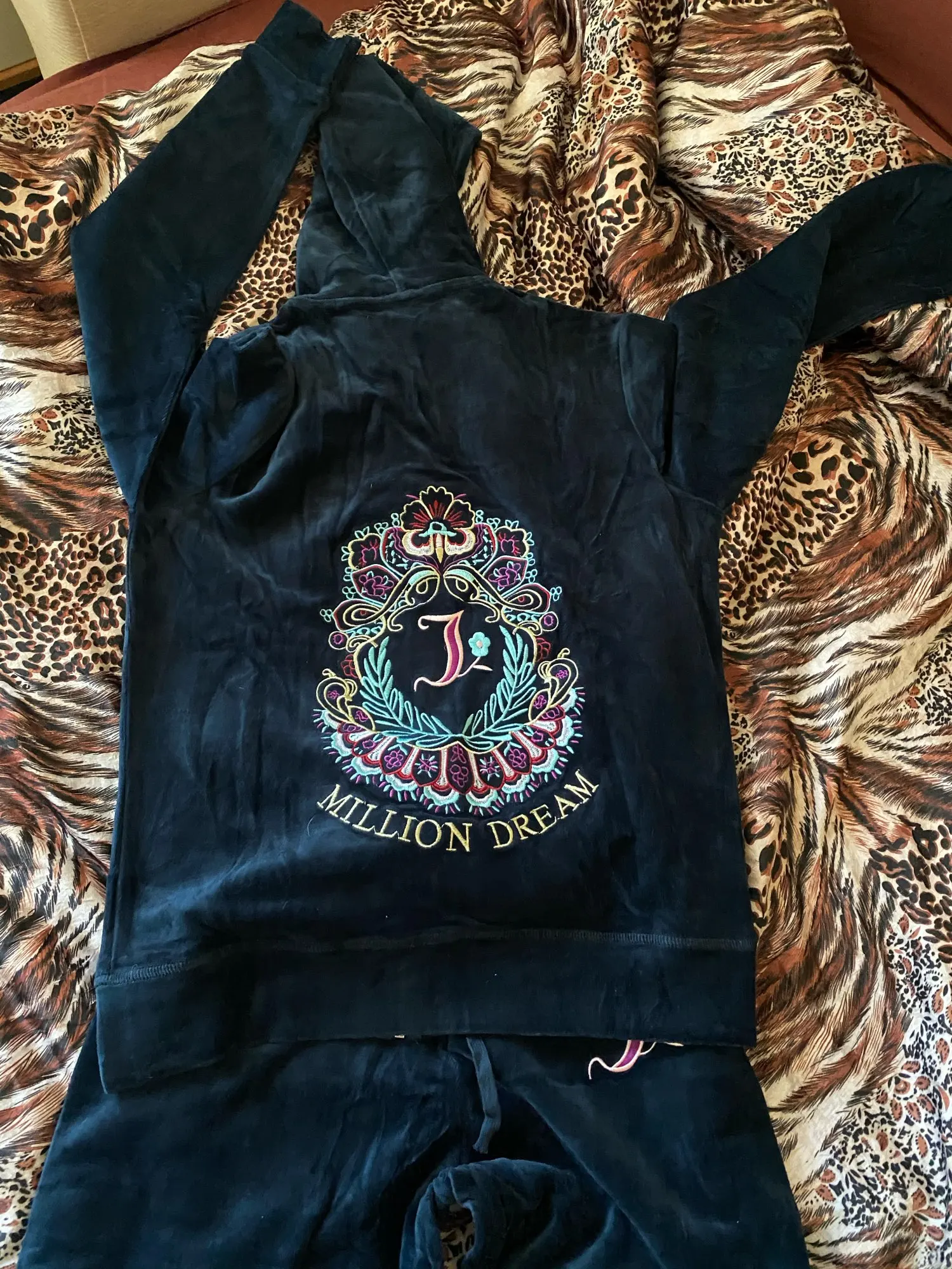 Очень красивый спортивный костюм. Качество как оригинал (у меня есть несколько). Молния хорошая. Вышивка очень аккуратная. Я 168 см/50 кг, 86-72-93: я получил размер L. Обычно я в JC. Топ идеально и не слишком туго, брюки немного свободные, но, по крайней мере, они не выглядят как леггинсы и удобны. Небольшой подарок от продавца-белые короткие носки. Быстрая доставка. Не общался с продавцом. Обязательно закажем больше. Я рекомендую. Спасибо, продавец.
