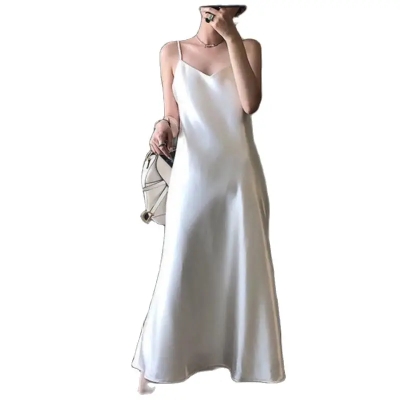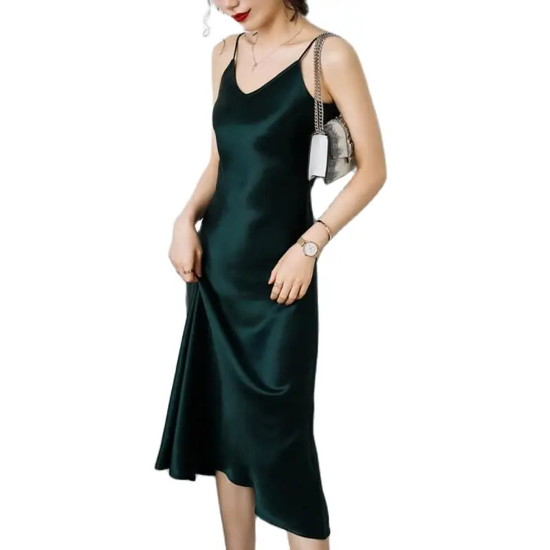 Темно-зеленые сексуальное летнее атласное платье без бретелек Спагетти ремень длинное платье с низким вырезом на спине платья вечерние повседневное одноцветное длинное платье для женщин