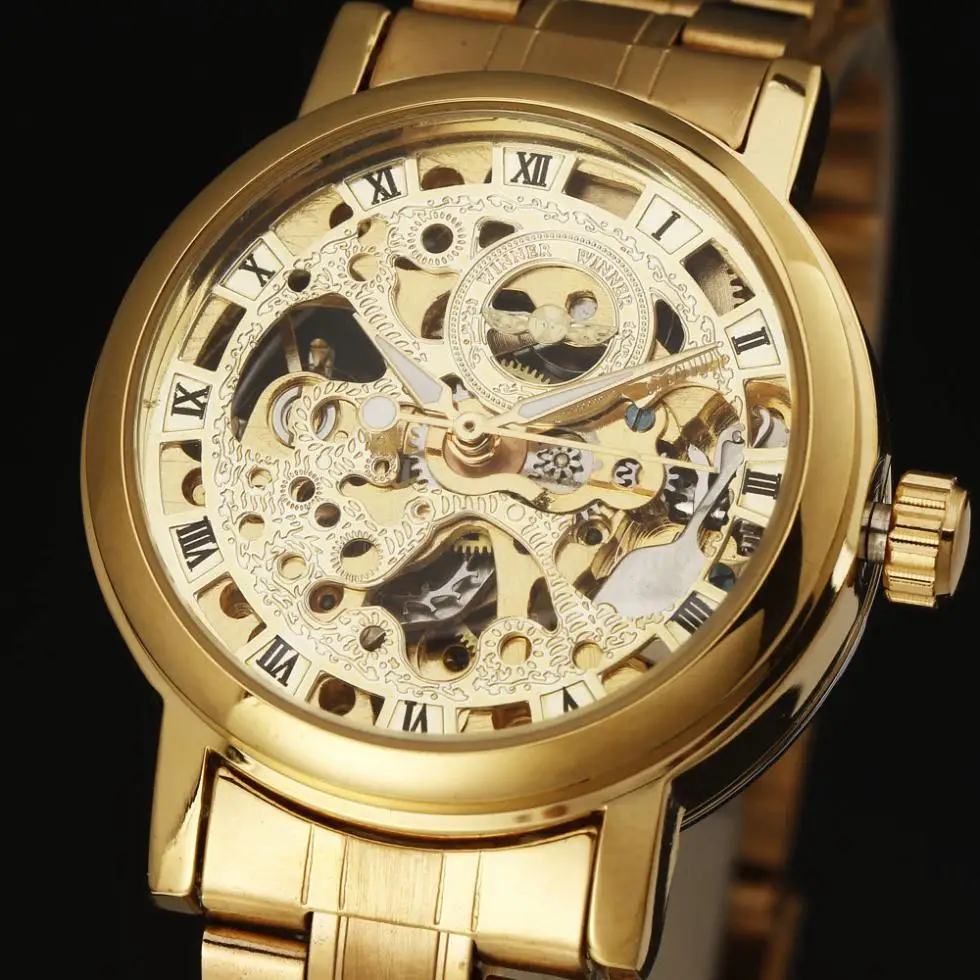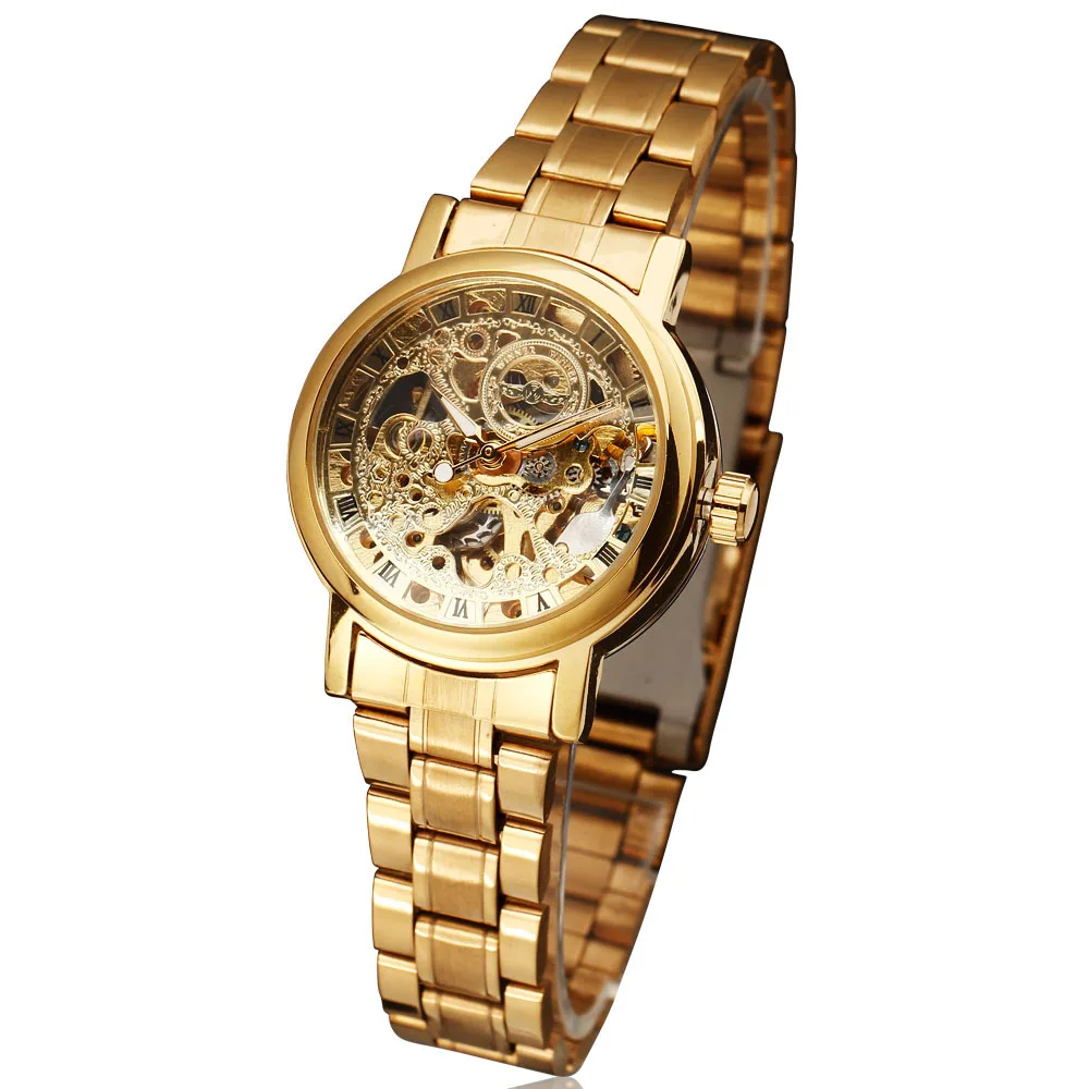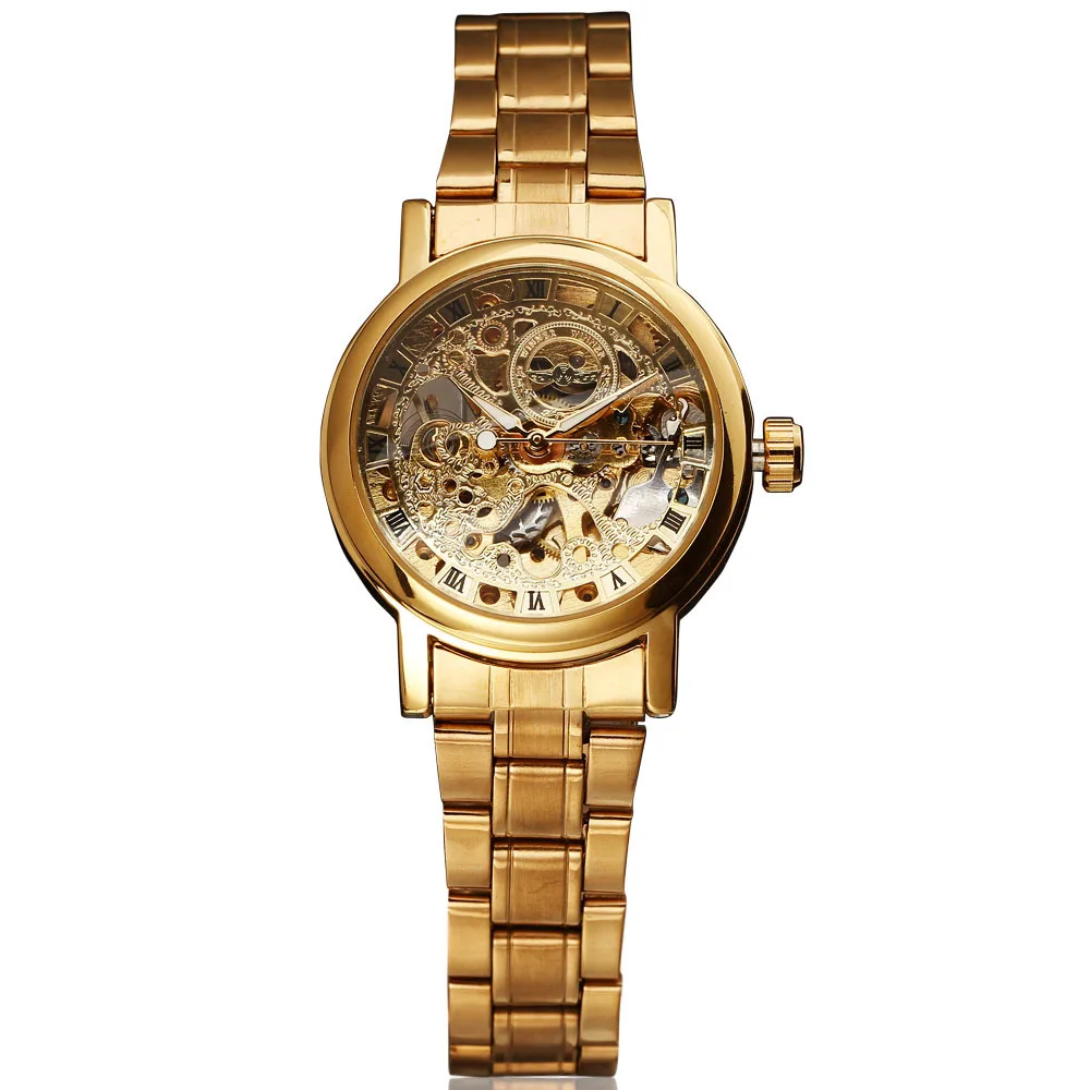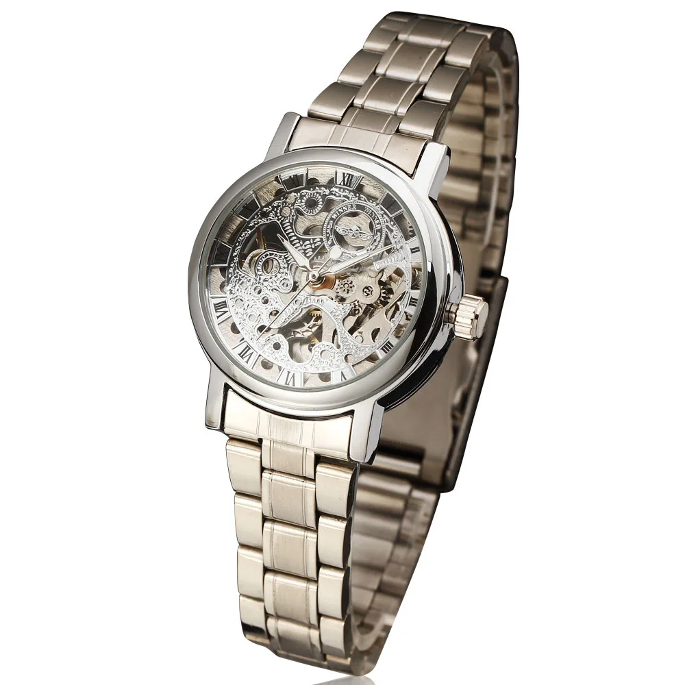 Часы-скелетоны WINNER женские, модные механические наручные стразы из нержавеющей стали с автоподзаводом