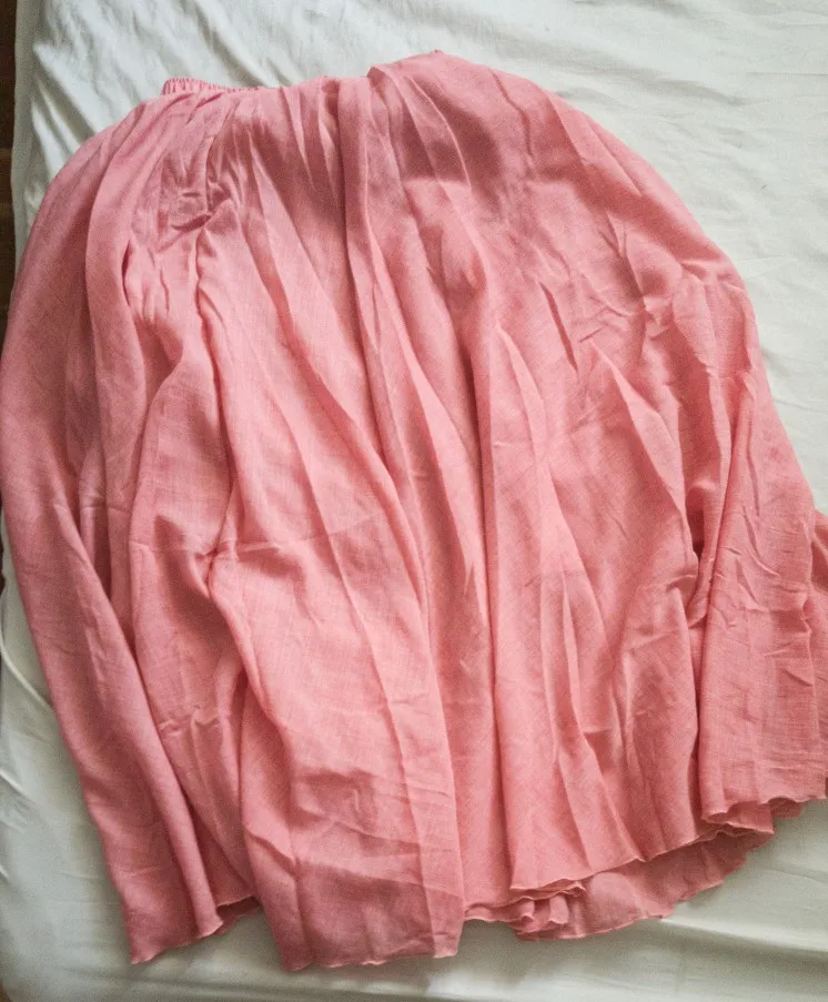Юбка красивого лосося, она действительно красивая. 161 см до лодыжек. Подкладка имеет хорошую длину. Двойная строчка на эластичном поясе. Единственная ошибка-несколько ниток, завязанных на внутренней стороне пояса. Я закажу другой товар в будущем. Продавец благодарит вас за сообщение, которое было отправлено в упаковке, что делает его более индивидуальным.