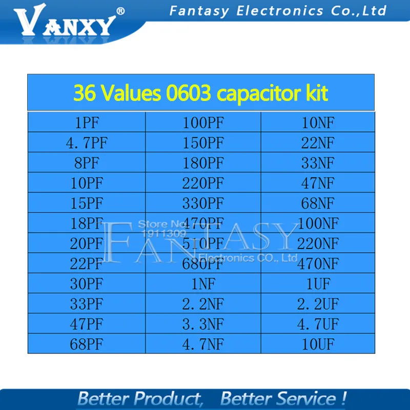 36 значений * 20 шт. = 7 20 шт. 0603 SMD конденсатор в ассортименте 1pF-10uF компонент diy набор образцов Новый и оригинальный