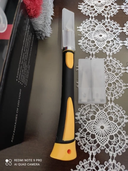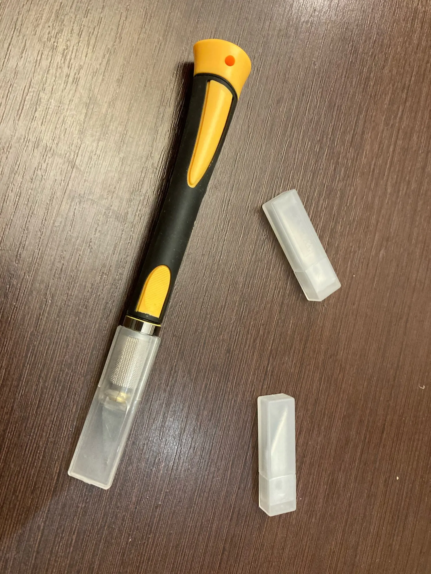 Получил свой заказ. Полный комплект лезвий. Скальпель соответствует описанию. Удобная эргономичная прорезиненная ручка. Приятно держать в руке. Хороший фиксатор лезвия с защитным колпачком. Доволен приобретением. Спасибо большое продавцу. Удачи ему в бизнесе и здоровья!