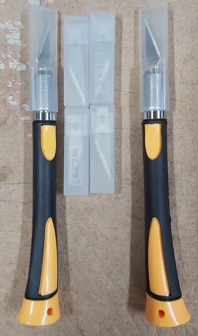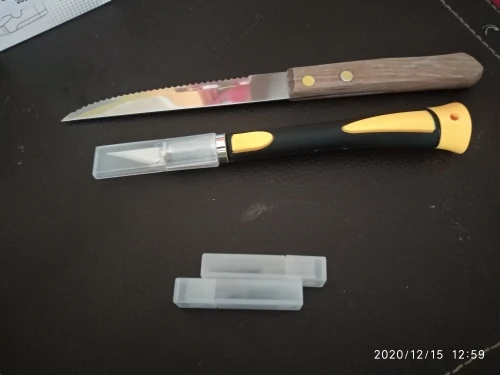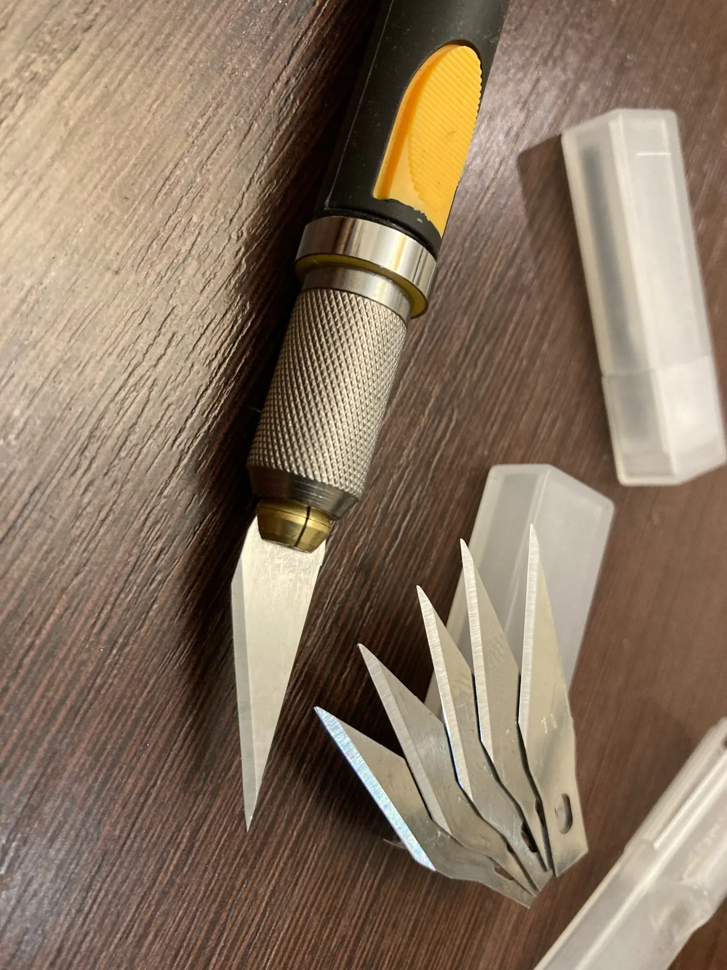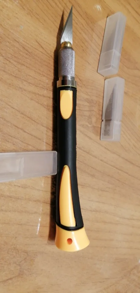 Пожалуй, лучшее приобретение из всех инструментов за этот год. Даже не смотря на то, что лезвие тяжело выставить в плоскость с формой ручки. Мне не с чем сравнить, это первый скальпель в мастерской, но жить стало проще, жить стало веселей.