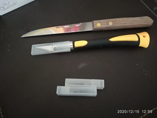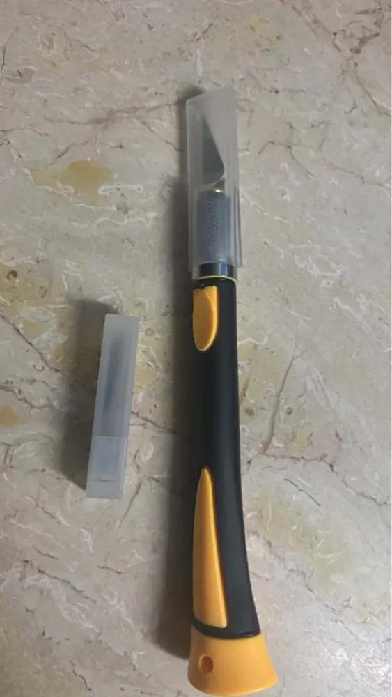 Все отлично! All excellent! Замечательный нож, лезвия острые, в руке сидит удобно, в комплекте еще 10 запасных лезвий. Очень удобно открывать посылки)