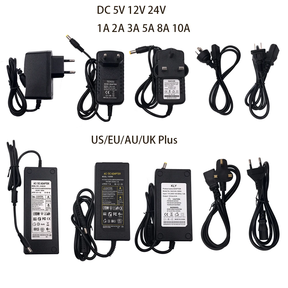 Адаптер питания для ЕССШАВеликобританииАвстралии, трансформатор переменного тока 100-240 В в 5 В, 12 В, 24 В постоянного тока, 1 А, 2 А, 3 А, 4 а, 5 А, 6 А, 10 А, преобразователь светильник а светодиодной ленты