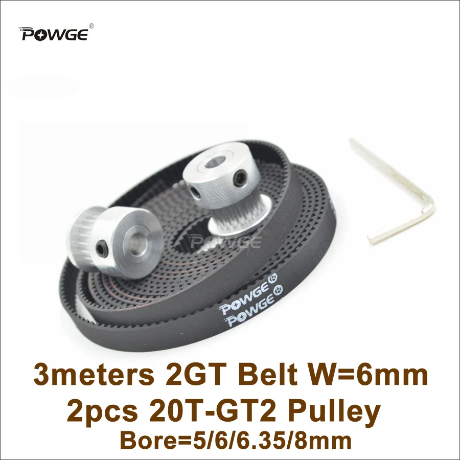 Зубчатый шкив POWGE GT2, 2 шт., зубчатый шкив с отверстием 566, 358 мм + 3 м, ширина ремня ГРМ GT2 6 мм, 20 зубьев, 20 T, 2GT, запчасти для 3D-принтера