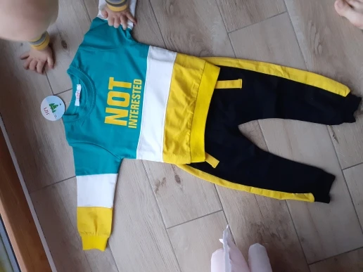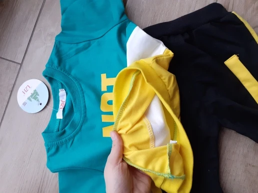 Отличные комплекты! Тонкий, гибкий материал. Красиво сделано. Для сына, который носит размер 92 zamówilam, спортивные костюмы для 24 MSC ie с бирками 100 см. Быстрая доставка, для польских товаров в количестве до 3 шт.